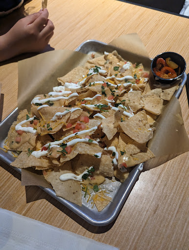 I want to start out with the good, cuz i like being fair. The food here is really good, i had a smash burger with no peppers (acid reflux, if you know, u know how painful that is) and the ultimate nachos. My wife had the all american cuz she's simple (i kid i kid) my smash burger was super juicy, what youd expect what a good smash burger to taste like. The sauce was creamy and not super greasy. The Nachos were phenomenal, has a bit of everything, im talkin spice, pico de gallo, cheese sauce, sour cream, and it was crispy every bite. Prob my favorite nachos and i love nacho and cheese. My wifes burger was great, she ate all of it. Fries weren't my favorite but not many places have the perfect mix of good fries and good burgers. The place looks good, clearly catered to football fans and sports fans alike. If youre looking for a nice place to eat food and have a blast with your friends or family watching the game, this is the place.
