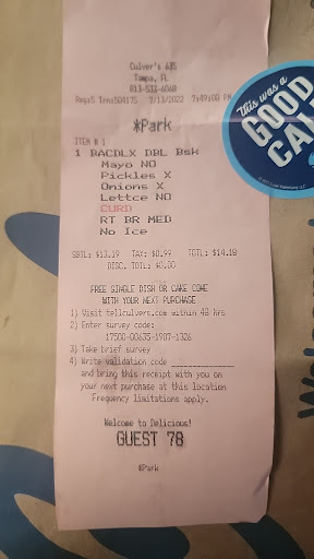 I first had Culver's in Wisconsin almost 20 years ago and thought it was amazing. I was quite excited when I found out they were entering my home market in the Tampa Bay area. Since they started in the Tampa area, me and my family have frequented the Falkenburg Road location frequently. We go for the good food, cleanliness of the restaurant and the typically good service. I swung by the drive thru today for a quick burger on my way back to the office. "Precious" assisted me and I felt her service level was more on the level of McDonald's than Culver's. If I'm going to pay more for a burger at a fast food joint, I expect quality food, cleanliness and good service. I'd rank "Precious" as "barely ok" in the service department. Her service level was just above "rude", barely making it into the "mediocre" category.
