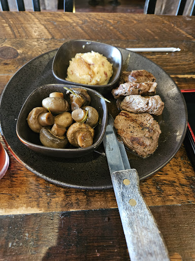 Read moreI had high hopes for this place looking at the food pics online. Don't eat here!! No one was at the host stand for nearly 20 minutes and as we were going to walk out some young man with a long straight pony tail comes up still chewing his food and trying to seat my party with the gentleman that had been waiting longer than us, in front of us. We decided to give them a chance but should've just left. The majority of the tables were dirty with plates, dishes, glasses, food, etc all over them, but there was only 1 actively eating table in the whole place. The guy ahead of us was sat directly next to us, all of the booths had crumbs and food on them, unclean, had to wipe my own seat off. The big long tables in the center were completely full of dirty dishes everywhere. When we were halfway into our meal we saw the host guy and one other girl start to clean up a table- they used what looked like a small single wet wipe and just slapped at small areas not doing a thorough clean. We waited a long time more for a waitress and then waited on drinks and 2 bottled beers, and then our food all came at once instead of the soup first that I ordered as an appetizer. Rare steak was overcooked to a medium well. Watched a group of 4 who also waited as we had, finally get sat at the mostly dirty table the guy half cleaned, only to get up and leave when the waitress never came over. Host guy sat another couple in the same table that the 4some left from, never wiping anything and even reusing the same menus they had all touched on. This place was filthy. Food was subpar, small portions, soup was cold on arrival, and the prices were way too high for what we got. Will not return. Your cleaning practices will spread diseases and your inattentive and slow staff should...