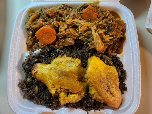 They do dine-in and takeout orders. Just order at the counter. They will bring it out to you when it's ready. The service here is fantastic! The lovely lady at the counter was very helpful when asking if they had soursop drinks. She also mentioned that they have different sized platter portions (regular or large). I went with the regular portion of Griyo, or Griot (fried pork chunks). It comes with your choice of rice, fried plantains, piklis, and a red sauce. I just had to try the Diri Djon Djon. I've only had it one other time, and it's delicious. This one was no exception. The rice was fresh, fluffy, and perfect in every way. The pork was tender and seasoned well. I love that the fat of the pork shoulder was still attached. That's what makes it so tender. Delicious!