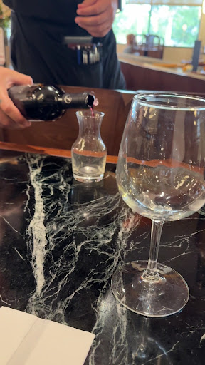 They bring the wine bottle to the table and do the tasting pour into a small decanter before pouring again into my glass.