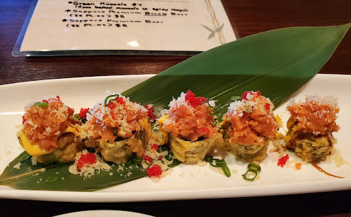 This is an excellent sushi restaurant in Valrico. I honestly don't visit it as often as I should. What I love is that they have unique sushi roll options without rice. Most places just have Naruto rolls wrapped in cucumber, which quite frankly is kind of boring. They have a ceviche roll that is tasty and unique. It's one of my favorites. But this time, I decided to try a few things off of their Izakaya menu. Everything was delicious! It was my first time trying the X-mas roll. It's wrapped with tuna and topped with lobster salad and these yummy wasabi and chili infused tobiko. The wasabi yuzu vinaigrette that it's served with was a great pairing. It was so light. So much so that I decided to also try the crispy mini roll that was also on the Izakaya menu. This one was fried, and had crispy panko along with the fish. Again, there was no rice which made it light and perfect. It was exactly what I wanted for lunch.