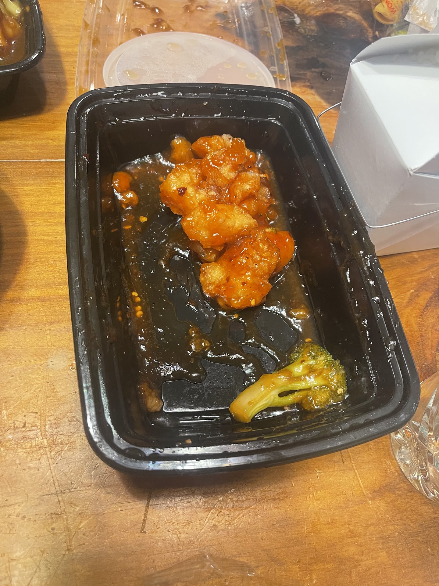 Everyone ate the General Tsoâs chicken, but it too sweet and simultaneously bland.