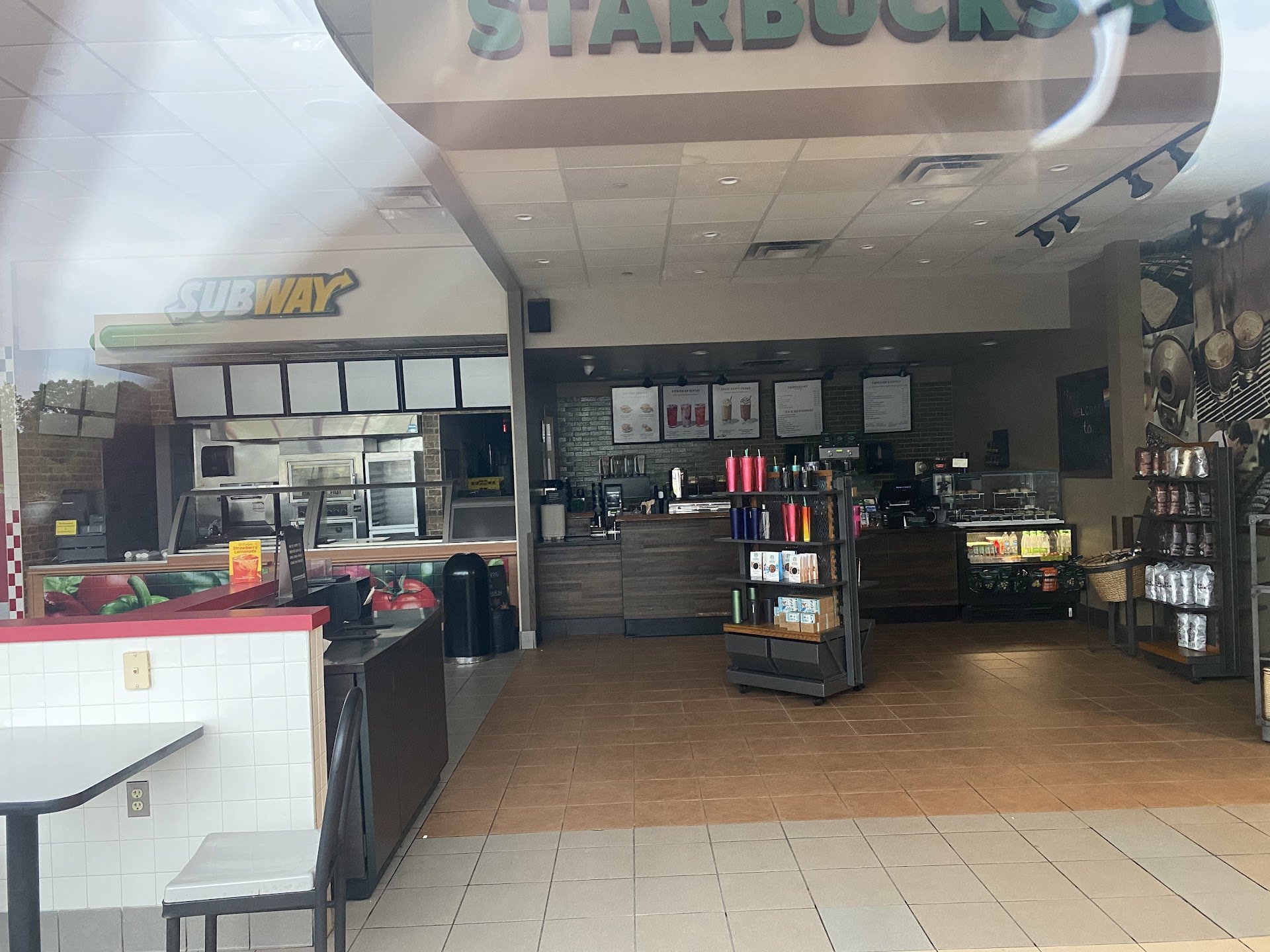 Ā Ā Ā Read moreHands down the worst Starbucks experience ever. Even though this is inside a truck stop, it's even WORSE than what you would expect for the location. Walking up to the counter and the barista was resting her chin in her hand and just looked at me (maybe she was hungover? Sad?, I don't know). She had no knowledge of the menu and kept forgetting other customers food items. The other barista made my drink wrong, I mean...I ordered a vanilla latte...how do you forget the vanilla?? I didn't have any weird requests or anything. And the way she corrected it would easily be a food and safety violation. The place itself is disgusting, coffee grinds, milk, food, other liquids, etc all over the counters and floor. So, in a nutshell...go across the street to dunkin or skip the area...