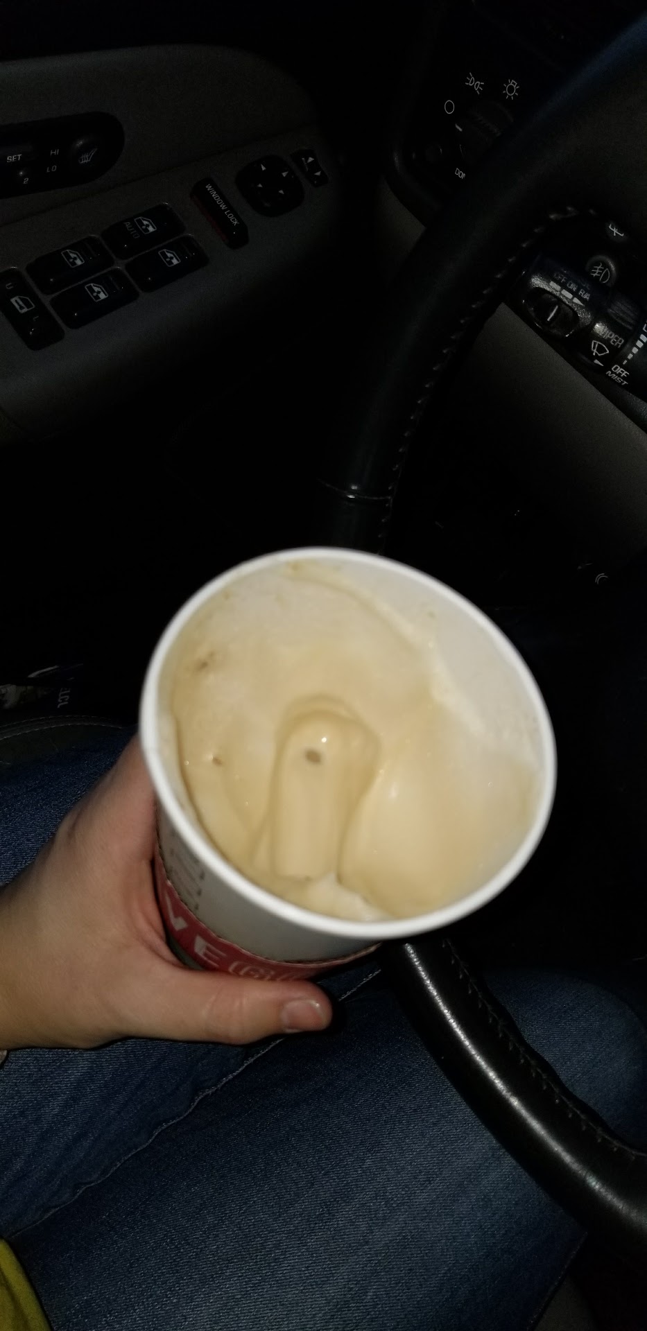 A little frustrating when you're having a bad day and you decide to splurge and spend $6.86 on a cup of coffee. Then you get back on the highway you go to take a sip and look what you get a 1/2 a cup of foam. I guess I know what the 2 girls behind the counter were giggling about.