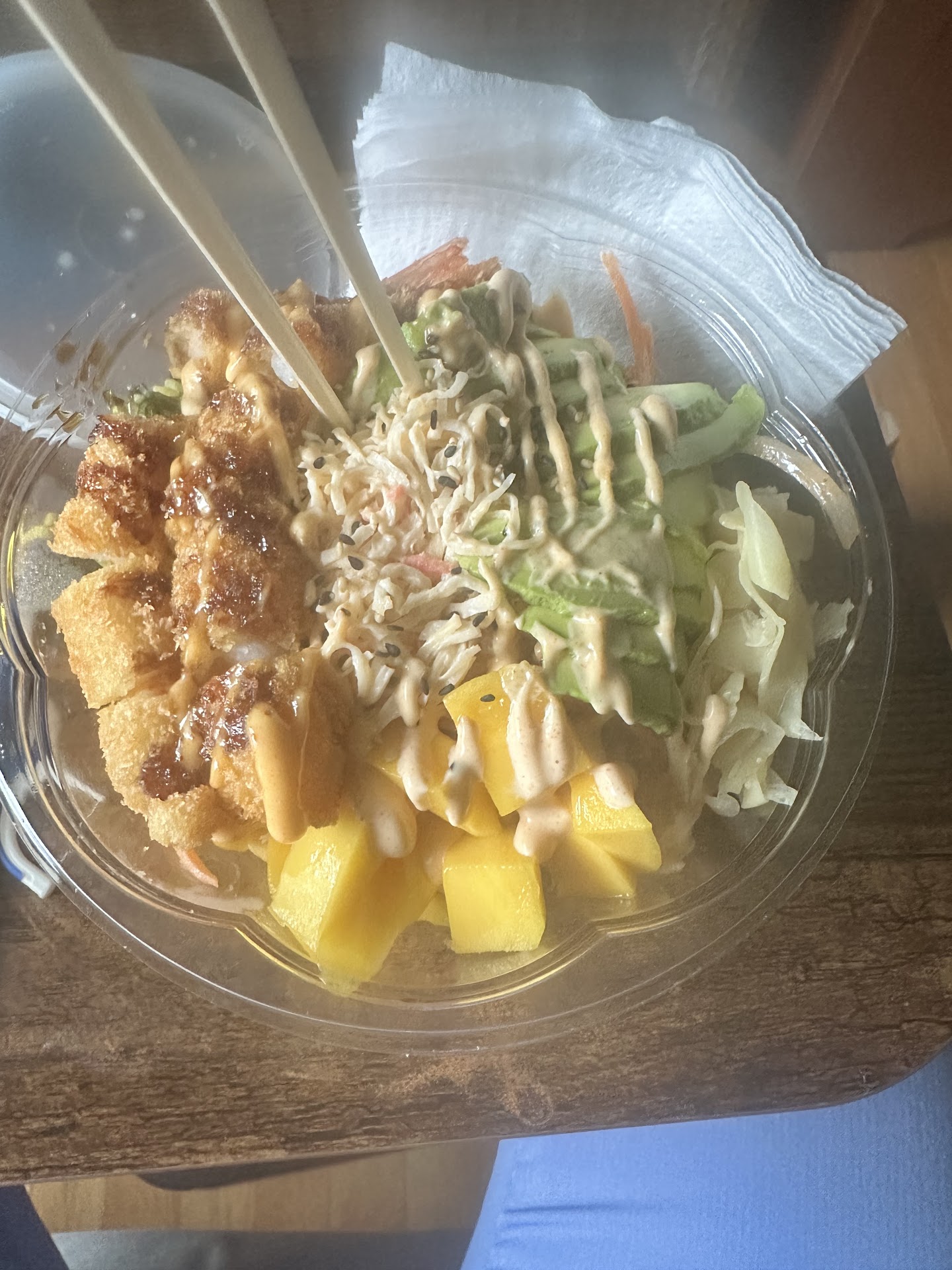 I didn’t get the guys name that served me but he was so patient with me making up my mind what I wanted made suggestions which I didn’t mind as soon as he makes something he wipes the counter I had a poke bowl with salmon and shrimp everything tasted fresh the seaweed was amazing I can’t wait to go back very nice environment. The salmon was so fresh I also had miso soup and that was also very tasty right now my belly feels so happy 🤣 ❤️❤️ my...