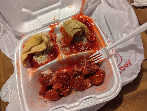 I wanted sesame chicken but it was not listed on their menu so I ordered the Spicy General Chicken that came with fried rice, 2 cream cheese wontons, and an egg roll. I also ordered the hot and sour soup. I asked for a small amount of sweet and sour sauce for my egg roll and she asked if I wanted crispy noodles for my soup. When I got to the window, it was $15 and thatâs when I figured out that they nickel and dime you for anything extra. The crispy noodles were $1.25 and they gave me an 8 ounce container of sweet and sour and charged around $2 for that. They have on the window the sizes and prices of the noodles and sauces. If I had known this, I wouldâve ordered their extra small sauce but I assumed that since I told her I needed a small amount for an egg roll that she would obviously know that I didnât need 8 ounces. More like 2 ounces. We eat at different Chinese restaurants about once a month and this is the first time Iâve ever been charged for crispy noodles for soup and for sweet and sour for an egg roll. But anyway, the chicken was all white meat, there were only like 5 pieces but they were huge. The taste was good but it wasnât crispy at all. Very soggy. The egg roll, rice, and wontons were mediocre at best. The hot and sour soup was probably the best or close to the best Iâve had. I wouldnât come back for anything but the soup. It wasnât bad but not worth what I paid vs...