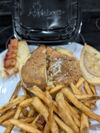 We order the 2 for$25 special they have going on. We're sitting there 40 minutes until the food comes out. We finally get it, it's a cheeseburger and fry and a bacon chicken sandwich and fry. We asked if they forgot about us... Waitress said it was a thick piece of chicken so they had to refry it 3x's to cook it. Well that's a red flag.