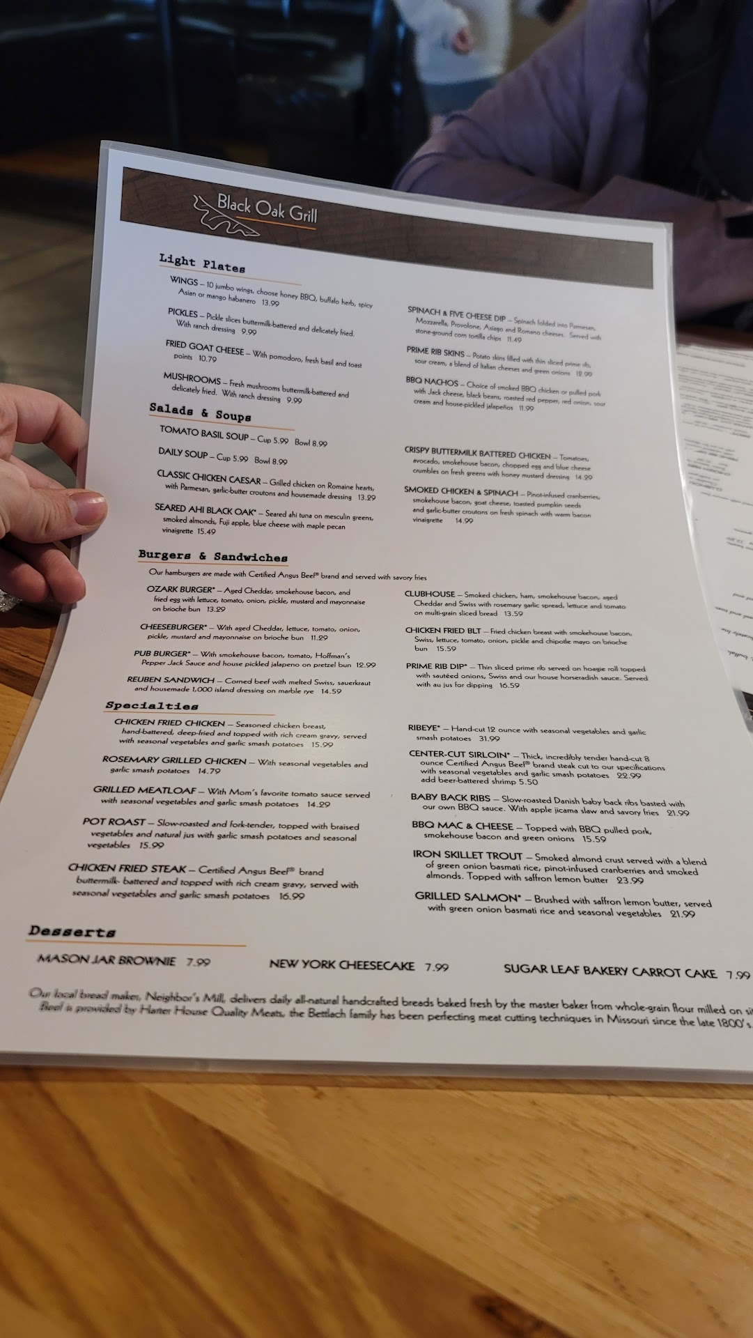 Read moreWhile looking for a place to eat while we were in Branson, we found Black Oak Grill. It was around 2:30 when we walked into the place, so the lunch rush was over by the time we arrived, and there were only a few parties seated at their tables. We had no wait for our seating.
