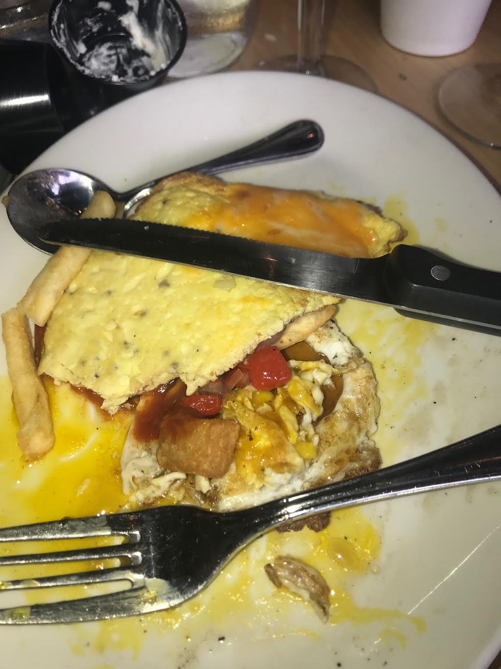 My friends and I then made the mistake of ordering eggs, which came out in various forms and temperatures. The omelettes were bland and watery, and I ordered an egg BLT called the "belt buster" which was more of a "bust" than anything. The bread was straight out of the bread bag and the sandwich was incredibly dry. I had to use the ranch from my appetizer to make it taste better. If you are applying ranch to your eggs something is not right. The wait staff also did not inform us that they apparently ran out of "brunch" potatoes and all of the dishes at my table instead came out with maybe the worst fries I have ever had. Again, we were not informed of this. This meal belonged in an airport.