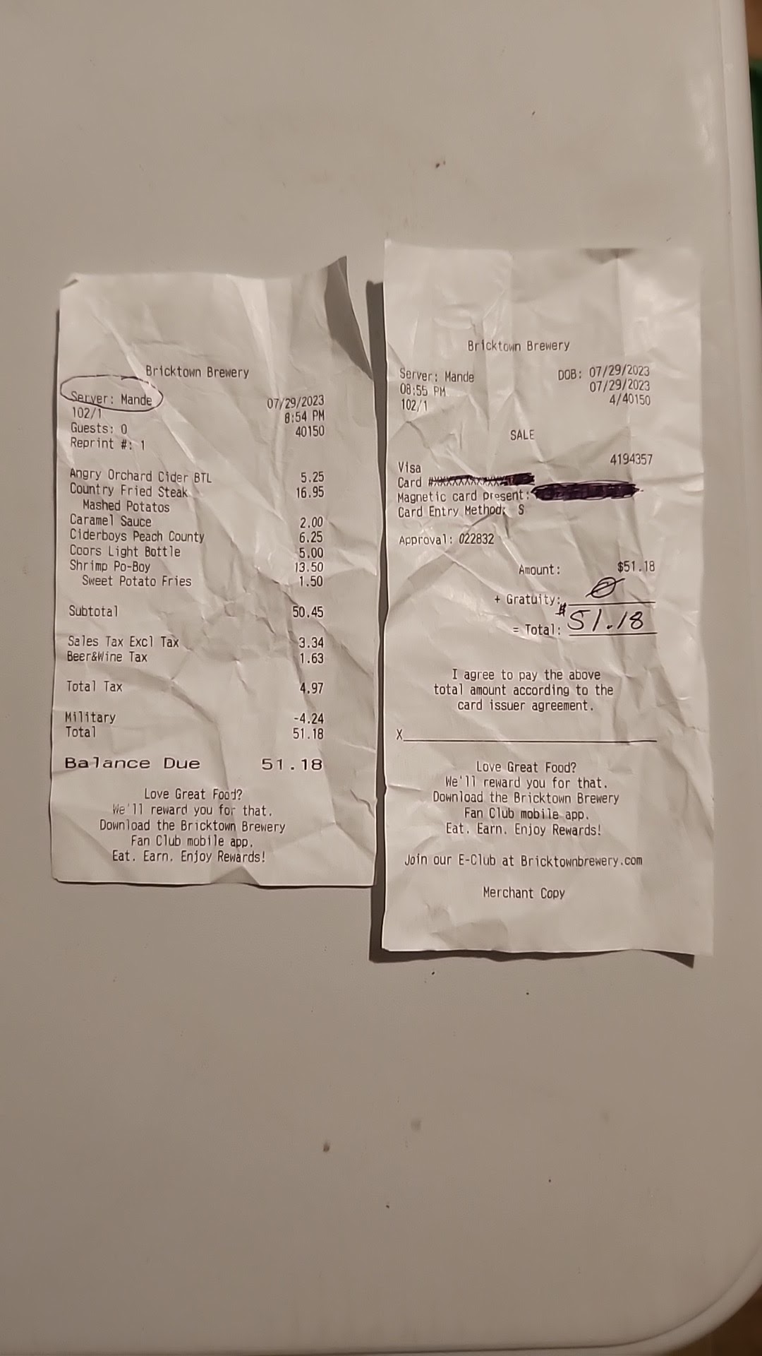 Read moreArrived in Branson on Father’s Day night. 6/15/25 arrived at 8:15 they close at 10. I wanna start off by saying the staff and waitress were AMAZING! (as I put in my stars). We probably had 12 people in our group! My mother in law took the whole family out for Father’s Day!! The location was amazing the staff was amazing! But our food was terrible! For example I ordered the Fried Shrimp meal! The fried shrimp was cooked so long that if they would have cooked it another minute it would have been burnt black!! Every bit of our food was WAY OVER FRIED! I’m not talking about little bit!! I’m talking some of it was unedible! I don’t know if it’s because it was the end of the night and the grease was old ! But my mother in law paied over $200 for the food and since we just arrived in Branson and hour prior to this ! We didn’t wanna cause issues so we just ate it! But if the staff wasn’t so nice!! We definitely would have sent half our food back! Just watch out for over fried food late at night before close!!! Very disappointed to say the least! And we actually have a Brick Town brewery in our hometown...