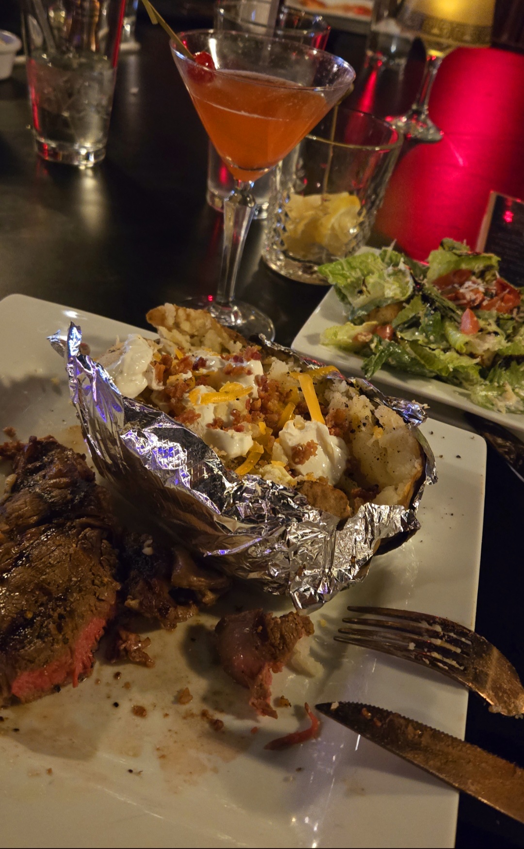 Read moreSo we came in with the highest hopes because of all the reviews but this was such a disappointment. We walked in and it was dead except for maybe two tables and a few bar patrons. We were told without reservations it would be hard to seat us, which was strange considering how dead it was. Ok, totally get it, but thank you so much for finding us a table. They didn't have any sirloins, at a steak house, forcing someone who wanted a steak to either have an expensive filet or a rib eye. We ordered French Onion soup for appetizers and two filets with onions and mushrooms. Our friends ordered burgers and kiddos had the grilled cheese and the flatbread pizza. My son's cheese and bread were pretty hard and he didn't eat it. Our server forgot my soup so I sat and watched as others ate bread and my husband ate his soup. My husband's cheese in his soup was rock hard and he found it very lackluster, not finishing it. Our steaks came and my husband's was unappealing and undercooked. Since they had such high standards and refused delivery of the sirloins, we expected better quality. Hubby didn't eat his. My soup came after my steak so then I had to choose to eat hot soup or hot overpriced steak. My steak was actually amazing but my mashed potatoes and gravy were cold. Our server was kind but wasn't around much so we decided instead of having things remade/sent back, we would just box stuff up and go. The children's menu was supposed to include a drink and we got charged for our friend's kids meal drink, which shouldn't have even been on the bill, let alone ours since my kid had water. I asked for the soup to be removed and she tried to get me a new one even though we had already asked for the bill. So I had to ask again for her to take it if and she disappeared. Their drink menu was lacking and I paid $20 for a glass of wine when a bottle of the stuff is $11. We won't be back. It was terribly disappointing to say the least. $200 for two steaks and a kids meal and two adult beverages was outrageous for...