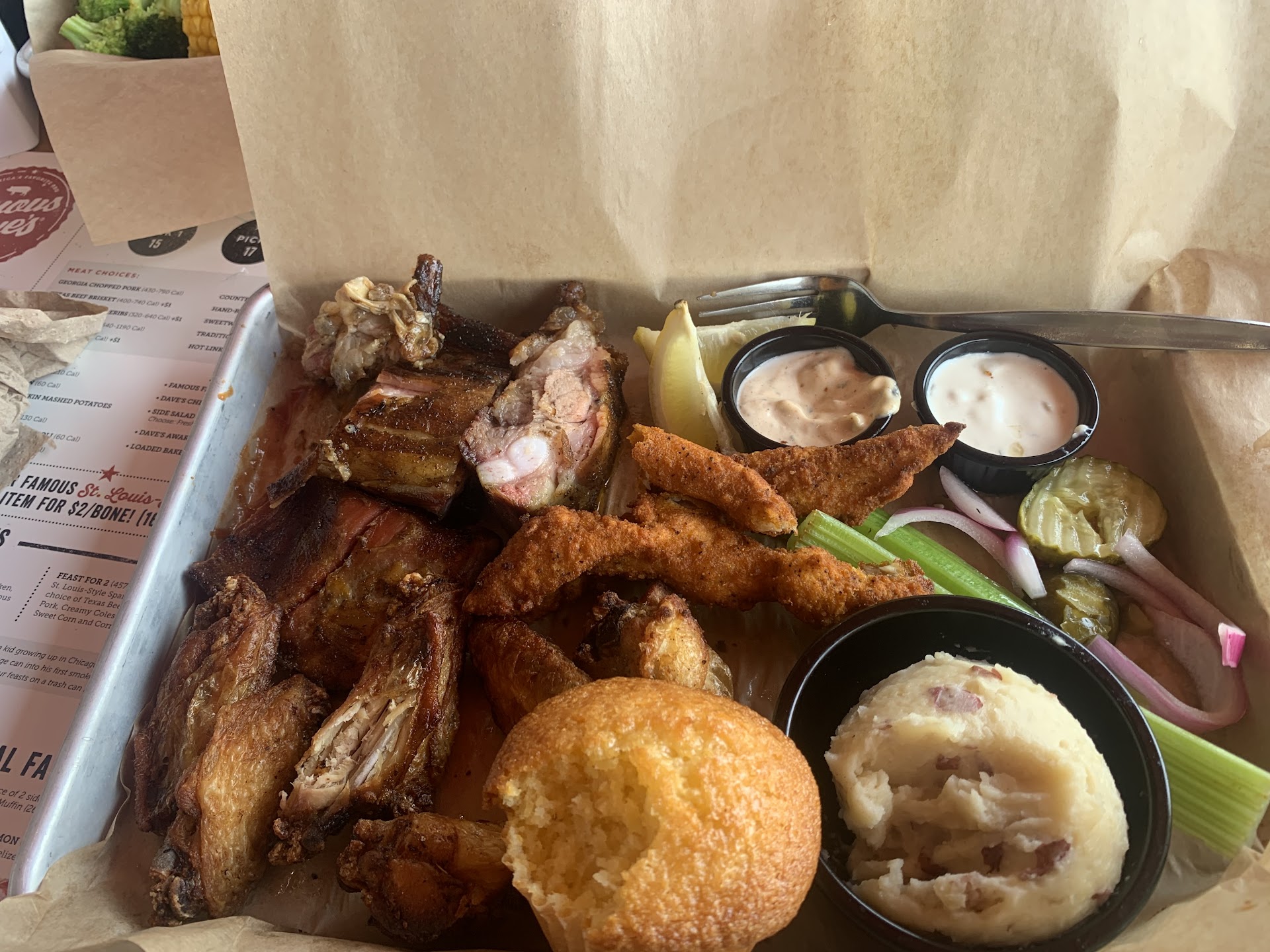 I got pick 1, beef brisket, she told me it was 7oz of meat. I said thats alot, right? She said its quite a bit.. it looked to me like 2oz of meat.. and I also got fried pickles, and I kid u not, it was NOT AN ORDER you'd expect!!! Im hoping to be able to share pics with you!