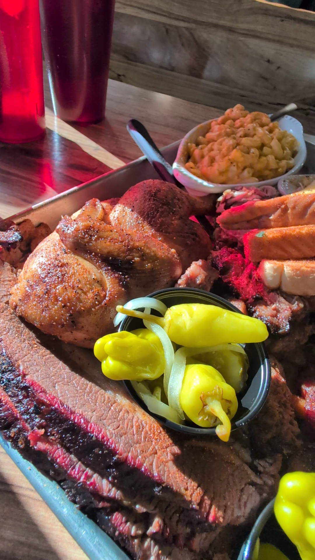 The food was nothing short of remarkableâsmoky and succulent in every bite. I opted for the Judges Plate, which was an absolute delight featuring a generous 1/3 lb of brisket, 1/3 lb of pulled pork, a 1/2 rack of ribs, half a chicken, a sausage link, 1/3 lb of burnt ends (I substituted it for the Pit Ham), mac and cheese, bruleed creamed corn (truly the best I've ever tasted!), and Texas toast. I was overwhelmed by the incredible flavors and left completely smitten with my meal. Honestly, everything on the menu looked tempting, and I found myself sneakily eyeing the plates of fellow diners as they walked by. What a delicious experience!