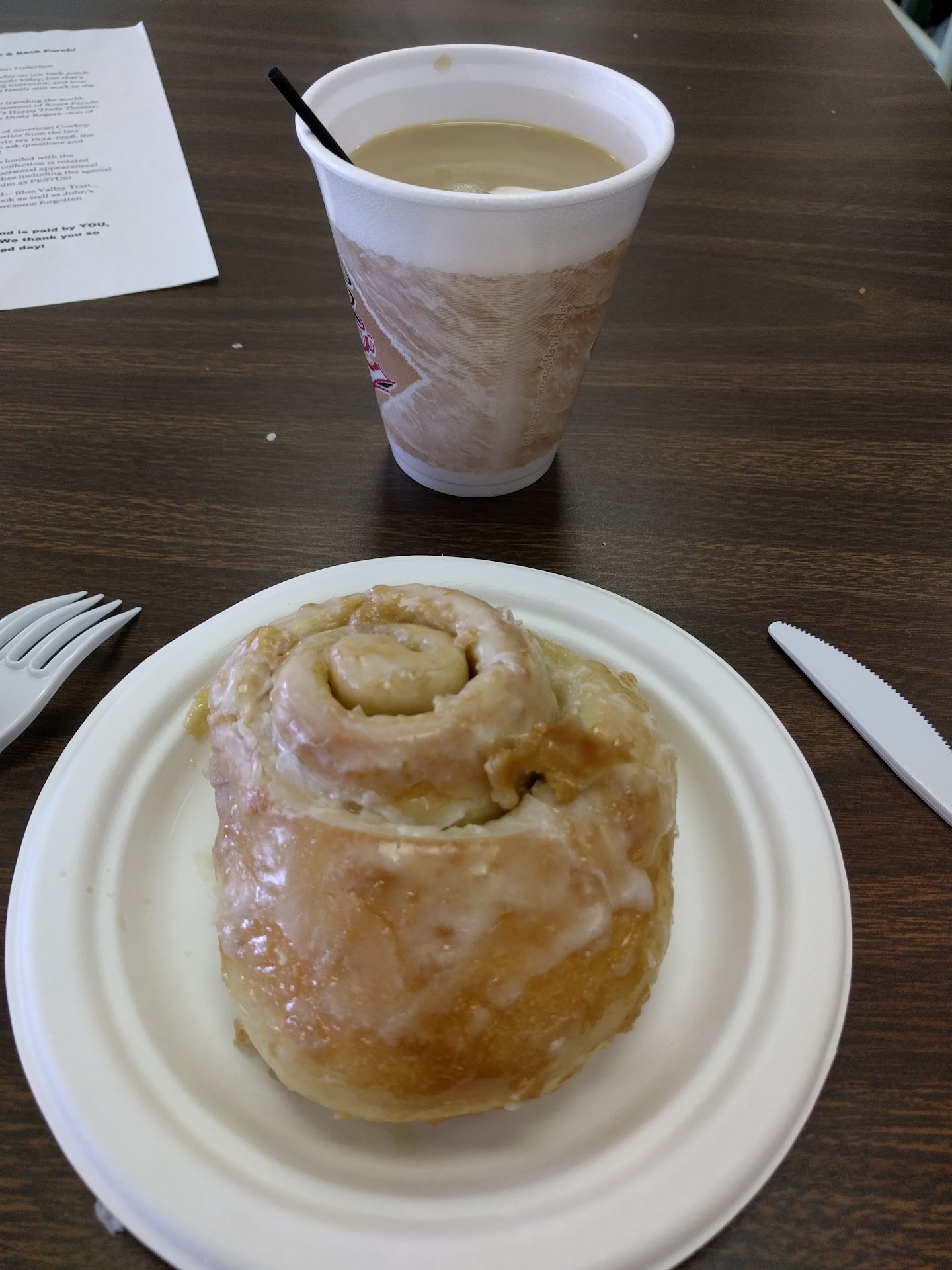 The atmosphere here is good. You will be able to see "Grandma" making Cinnamon rolls. I really had fun seeing them. This place is simple, including their chairs and tables. Also there is a live music. You go to the counter and order. We ordered regular rolls and toffee along with coffee. As I mentioned earlier I don't have a sweet tooth my wife does. I ordered toffee especially thinking it will tone down the sweetness, but I was wrong. The toffee was actually a liquid type syrup full of sugar. So, I wife volunteered to exchange. I couldn't finish my regular cinnamon rolls. My wife on the other hand only had 2 bites and she was done with the toffee. Then I offered her my food which even she could not finish it. One staff wanted to know how we were doing, and my answer was simple "It's really really sweet, too sweet for us". He replied, "May be we will remove the sweetness" and walked away. Nothing after that. The price of the cinnamon was okay, but I think they should really think about reducing the price of the coffee, especially how they serve it.