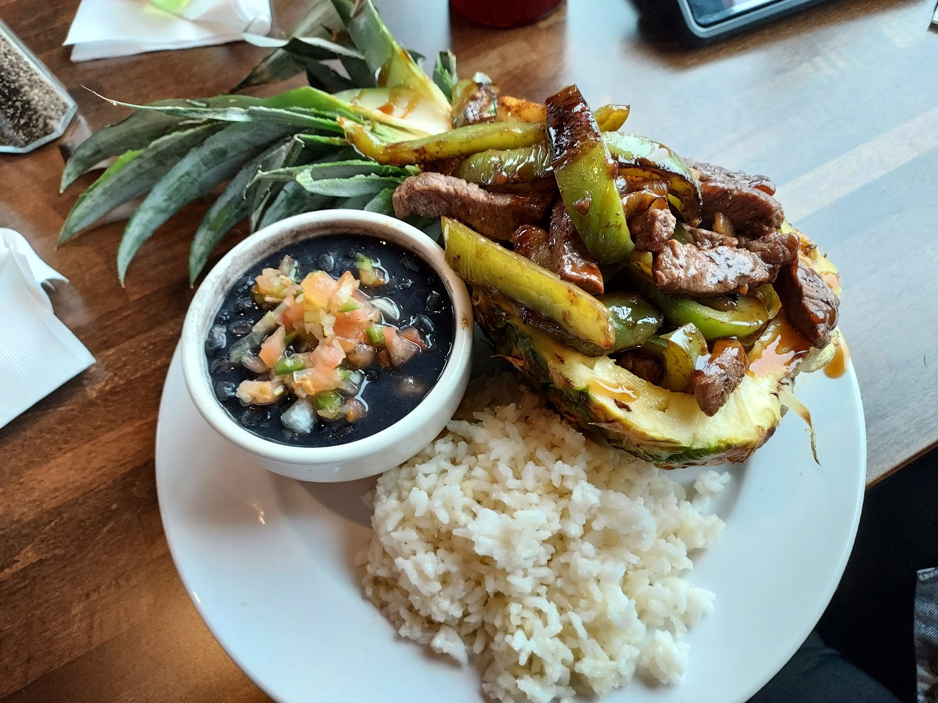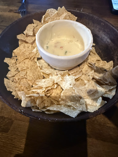 We started with queso and chips. The queso was actually very goodânice spice and homemade flavorâbut the chips were mostly crumbs, like the bottom of the bag. Strike one.