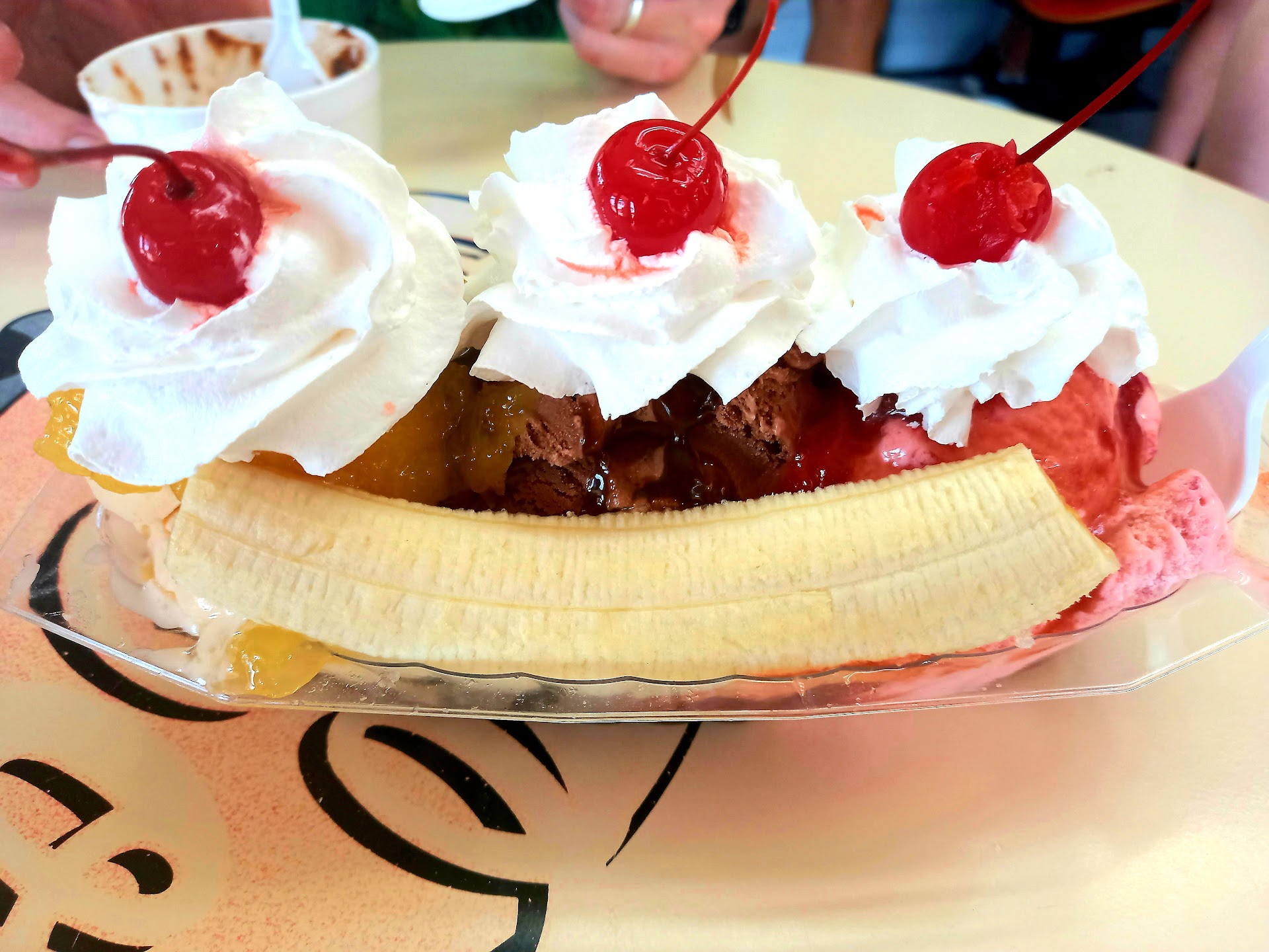 Read moreThe decor was cute but we were not impressed with the ice cream. We were expecting homemade ice cream from an ice cream parlor but it’s not, it’s no different than what you buy in a store. We decided to give it a try anyways and my husband got the chocolate chip cookie sundae and I got the peach cobbler with ice cream. For his, they heated up a store bought chocolate chip cookie in a styrofoam bowl and the styrofoam and cookie melted together on the bottom. My peach cobbler was pretty tasteless, you could tell it was just canned peach filling and was just ‘blah’, they just reheat it in the microwave, it’s not really ‘fresh and hot’. We left very disappointed and found it to be a waste of $12. We would have had better and cheaper ice cream at...