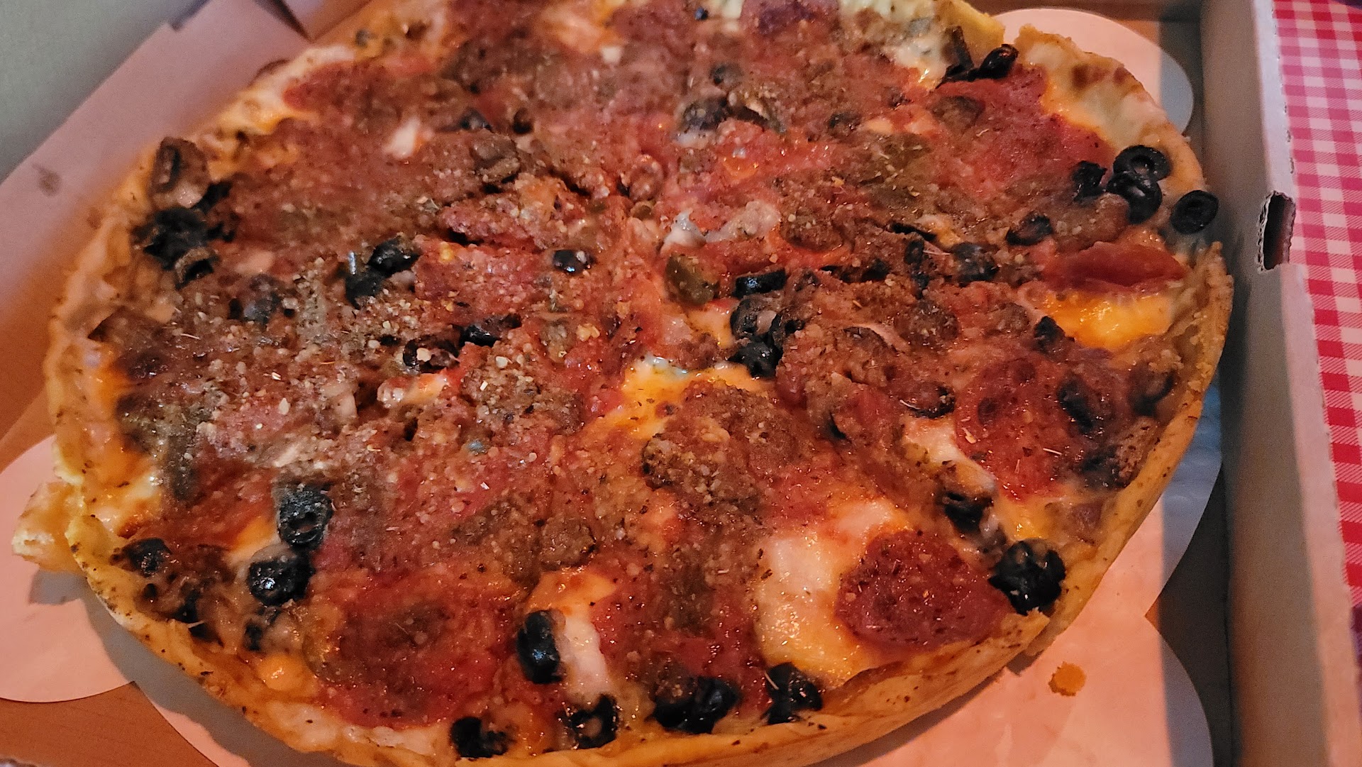 We got our food and it was correct, it was great. Aside for her tossing my deep dish down on the table with a hot pad and it not even sitting properly on the wood tray they have for the dish. They never came back to check on us. They checked on all the other tables and spoke nicely to them since we overheard.