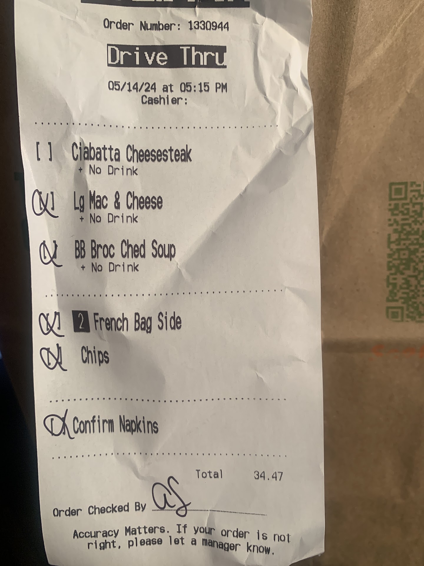 My friend picked it up for us because he was already driving my by Panera and coming here to fix my sink tonight.