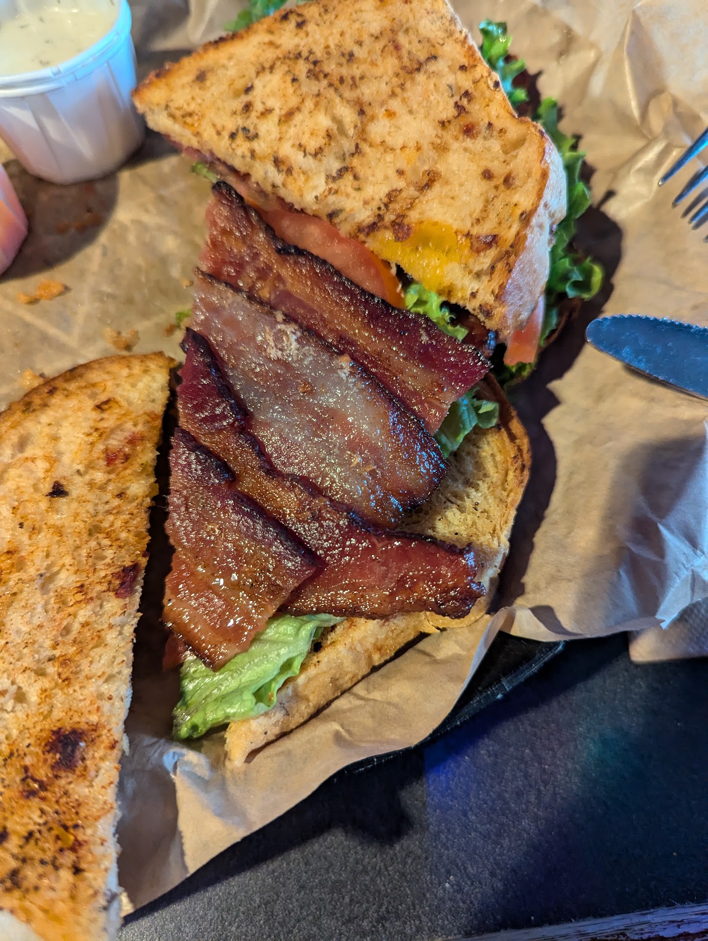 We came in Wednesday night for the Jeep Branson 2024 event; we stopped here Thursday for lunch and it was wonderful! Cheese curds, chicken quesadilla, and tots - the cheese curds were especially yummy! It was all so great that we came back for dinner Saturday. Dana and Angel took care of us and they were both so great! The atmosphere is great - clean with great music. Good food and drinks...we left our names on a dollar bill and taped it to the bar the first time we came in. Also - the way they cut and lay the bacon on the BLT is SO nice!
