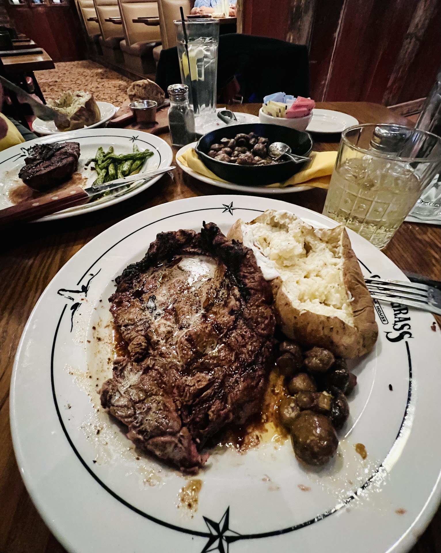 Read moreI'm writing this review as a warning to potential customers --beware! Want to say that we're from OK City and we eat at the Saltgrass here often and love it, it's a 5-star place. However this Saltgrass should be avoided. Got a bit of attitude from the hostess... okay, no biggie. Then a little more from the waitress, but I don't think that was intentional, and she ended up turning it around and being helpful later. However, the biggest issue was the chefs and management. We ordered the silver star medium rare (which we get all the time here in OK City and love it), and it came out medium well. The waitress apologized and took it back and said the chefs are new/untrained. Okay, I guess that's understandable. Later she brought out the replacement steak that was medium rare through about half of it, but rare (almost still mooing) in other parts. Plus, it was unseasoned and really lacking flavor. Got an apology from the waitress, but no apology from management or anything. At the end, after waiting for a very long time for the check, my family left and I went inside to pay. Here in OK City, they do a very nice military discount, so I asked if they did that here, and the waitress said yes. However, the manager returns the bill to me with a lot of attitude and says "don't forget your card and your ID!" and turns and storms off... I open it up and the bill was reduced from $78 to $76, which was somewhat of a slap in the face to go along with her comment. I would rather that she say they don't do a military discount than be insulting. No apology for the improperly cooked steaks. The main point of a steakhouse is that you can get the steak right, hence my 1-star review. We will continue to go to the Saltgrass here in OK City, but this place in Branson is giving Saltgrass a bad name -- recommend ownership take action to remedy the issues with management and chefs. Thank you for taking the time to read...