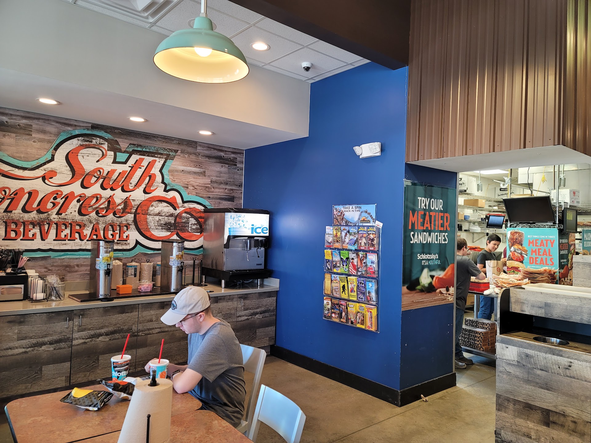 Read moreI think I can honestly say that this is THE NICEST and most updated Schlotzkys I have ever been to in my entire life. The exterior makes it look like such a hip urban place to eat. Plus itâs got a Cinnabon in it which my wife LOVES. We went inside and it was just as gorgeous if not better than the exterior. Darren the owner was serving us directly and he is so nice to his customers and thanked us for coming out. I loved how he made us feel so good for supporting his restaurant. His family working there was just as helpful and great to us eating there as him. Iâm not impressed by restaurants too often but the owner definitely went above and beyond what he needed to to help us feel like we were paying customers and supporting his establishment, which I was happy to, and HIGHLY RECOMMEND! The funniest sign I think I saw on rhetorical wall was âHillbilly Vegas!â I had thought this myself but was funny to see it on the wall of a local restaurant. Thanks Darren for a great...
