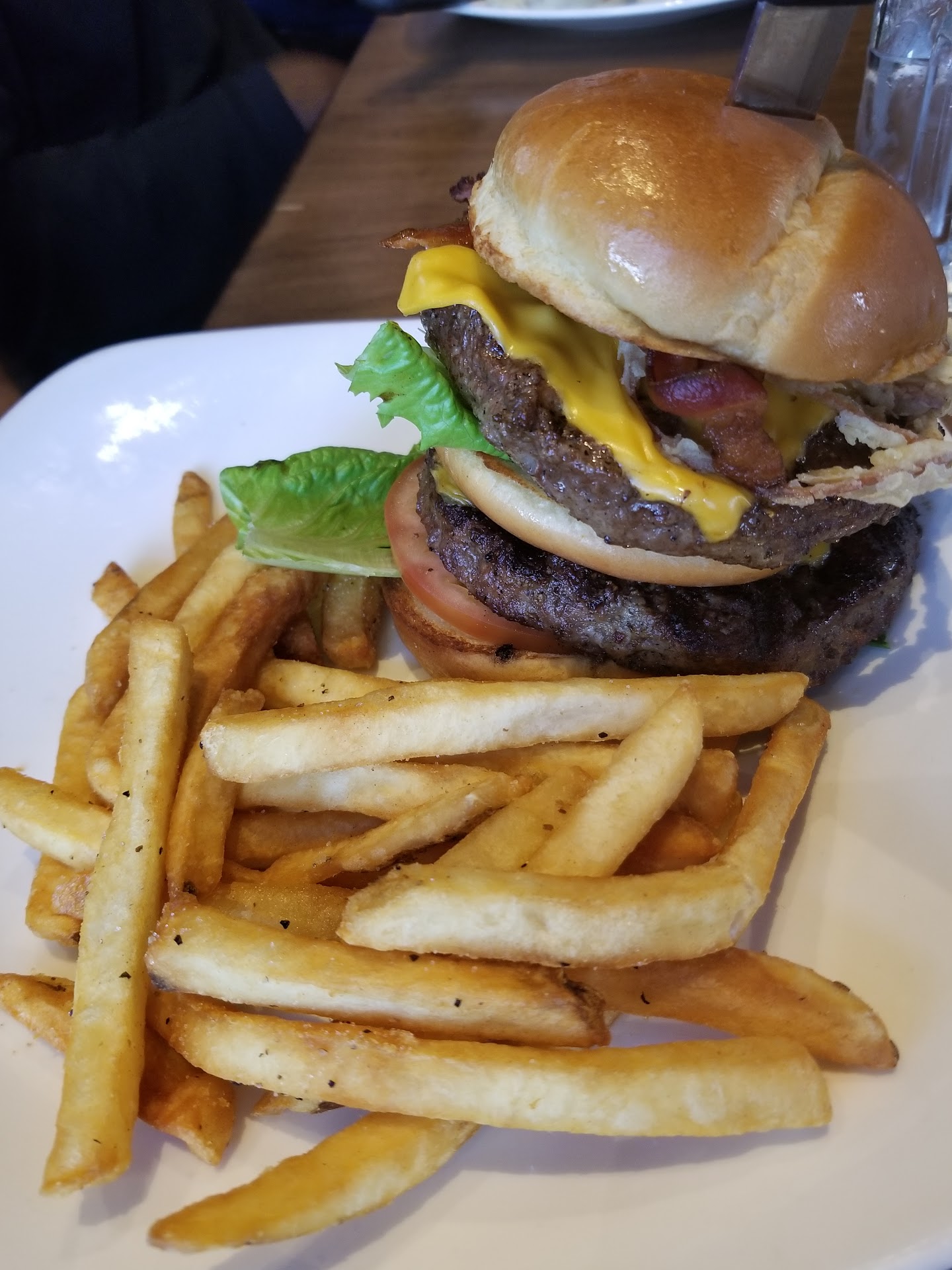 My mom had some shrimp pasta, which she said it was good, as were my dad's and my fries, but that's about all the praise I can give them. Not being facetious when I say this, but I wish we had patio seats so I could toss it to the fish and birds.