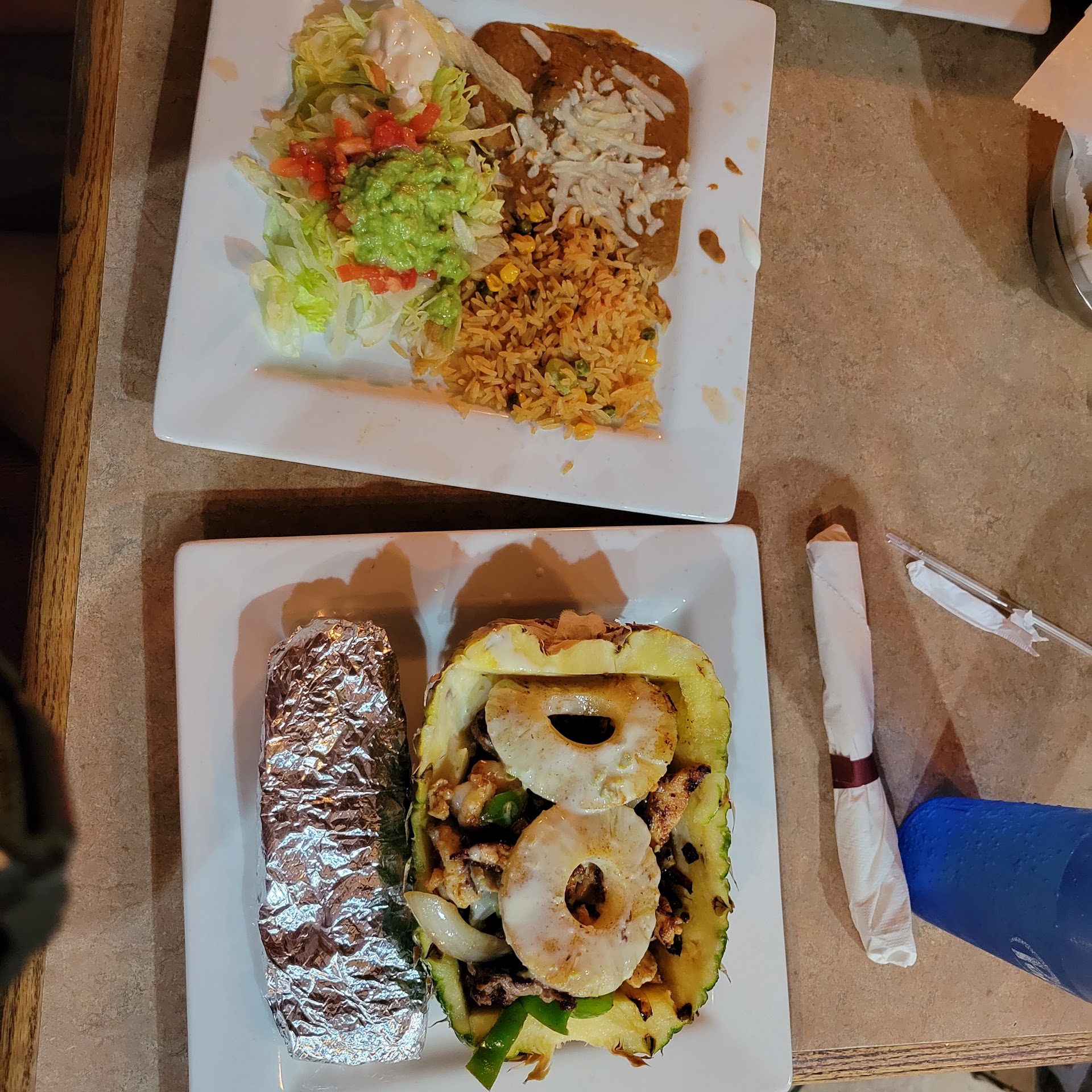I stopped here on a road trip and ordered a simple burrito with rice, grilled chicken and guacamole only. The waiter was extremely friendly and the chips and salsa were really good. The bathroom was clean, but the floors were so slippery that my two-year-old almost fell 3 times just walking. The burrito came out fast, but tasted like everything was burnt. I opened it up and there were huge chunks of black overcooked burnt food. It was also incredibly small compared to every other Mexican restaurant I’ve been to. I showed the waiter and he gladly said that he would have them remake it. I got the burrito back and I opened it up just to eat the inside with my two year-old, like we always do… And the burrito had the most minuscule amount of rice in it, literally maybe 2 tablespoons. It was really odd. So I had to ask the waiter to fix that as well. He went ahead and brought out a side of rice. I don’t know why that wasn’t putting the burrito just a few minutes prior. Super odd experience. The new rice was OK but the second bit of chicken in the burrito had the weirdest aftertaste and just tasted off! I asked the way to please take the burrito off and just to charge for a side of rice. I left a tip equaling what I would have paid for the burrito in the first place. Because the waiter handled the kitchen mistakes very well. I do not recommend this place based off of my experience. It was a waste of one hour of my time And we only ate a Bit of mediocre, definitely not authentic...