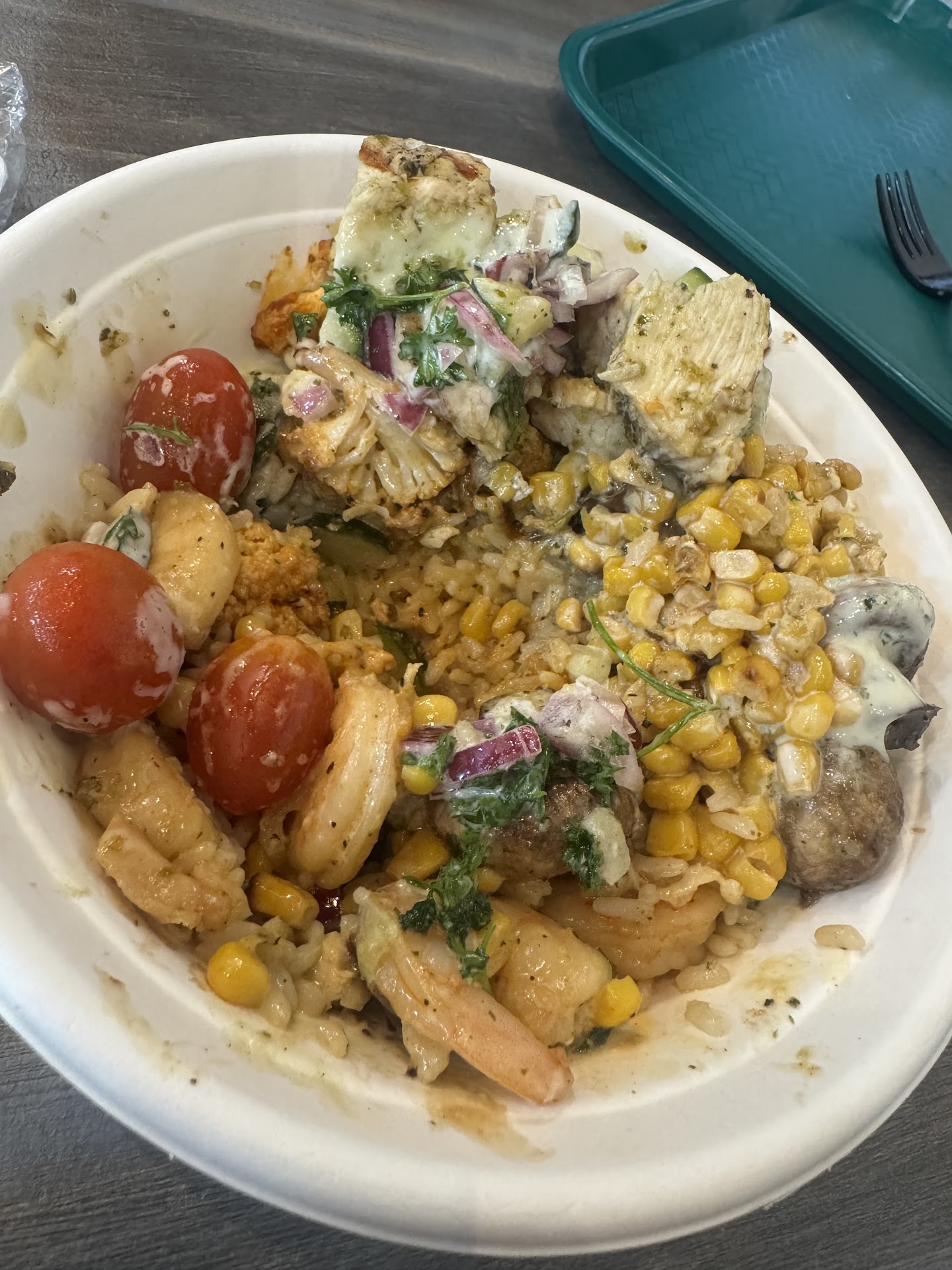 I got the Big Mahana bowl (first Pic) with sesame noodles, coconut rice, garlic green beans, the best mushrooms I've had in a while, and some spicy Nashville Chicken. Checked all the boxes ā¤ļø If you're still reading: Their chocolate chip cookies are absurdly good. I went back for two more (and I NEVER do that with sweets). My wife wants the zucchini bread brownie every time we go. And finally: get a drink, then mix 1/3 unsweet tea, 1/3 strawberry dragon fruit juice, 1/3 pineapple passionfruit juice....