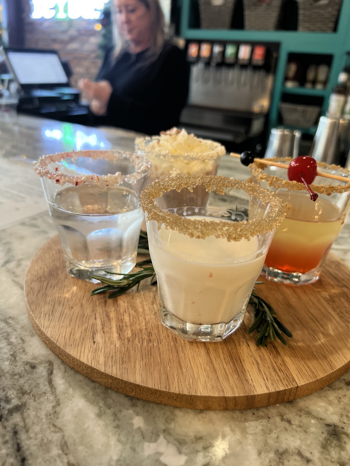 We came here after a disappointing experience with chateau elan. We pulled this place up and it seemed cute and quaint. We came in and sat ourselves (there was a sign at the bar stating to do this). We sat closest to the bar opening so the bartender wouldnt have to walk so far since we were going to be getting a couple rounds of drinks and food. We sat and waited 6 minutes before being greeted while there was only 11 people in the resturant. The bartender finally came over to the table and we were super excited to order some of the craft cocktail drinks. She took my husband's drink order since I was a little indecisive on which one I wanted first. It took over 8 minutes for the drink to come to the table. I ordered a spicy Paloma and proceeded to wait another ten minutes before it came. We ended up ordering food to go since we were kind of disappointed with the service and didn't want to wait another 15 min for drinks. It took 35 minutes for the kitchen to make 2 sandwiches and there was no other food being ordered or made. My spicy Paloma was just heat, no other flavors, which was incredibly disappointing. As we were waiting for our food, my husband finished off his drink while mine sat full the entire time we waited and the bartender never came back to ask if he would like another one or what the issue was with mine. We were finally able to grab the check and received our food. Once we paid and left we saw the size of the sandwiches given to us. Pictured below is the same sandwich a year ago and the one we received. Once we were able to eat the food we waited so long for, we discovered the chicken used was precooked and bland. This just adds to the irritation on why it took so long. Incredibly disappointed considering how excited we were. The cherry on top of this experience was the owner/ manager who seemed more interested in cutting up with a couple at the bar and letting her underage daughter sit at the bartop with her boyfriend and friend than ensuring quality guest experience and...