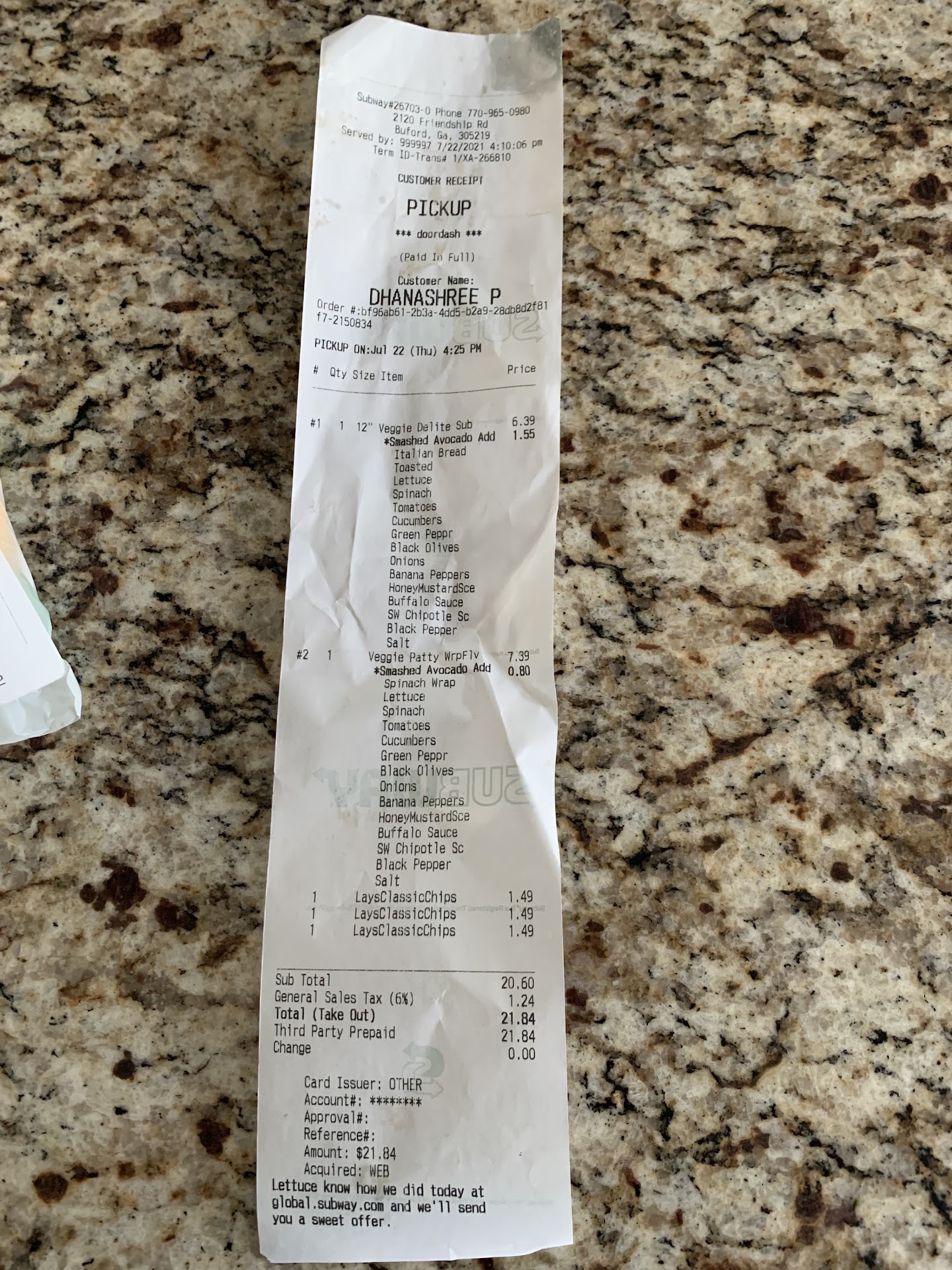 When my wife requested two scoops of avocados, he barely sprayed avocados on the sandwich and literally threw half of the avocados into the garbage as if he were throwing the ball into the court.