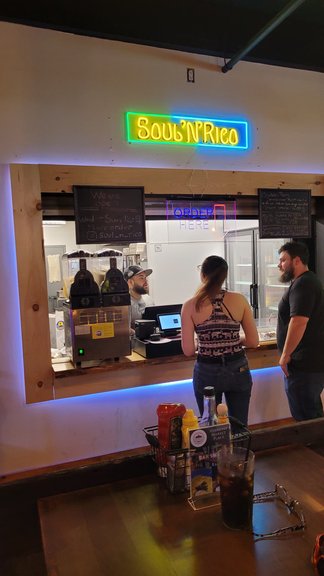 Read moreAt 7 on a Saturday night only 2 of the kitchens were open. We went in not knowing that we weren't going to a restaurant. Coming home from an out of state funeral, I had my friend look for someplace to eat in Brattleboro. She said there was a Puerto Rican place just off Exit 1. Sign on the main door said entrance to the restaurant is through the Tavern. So, the Puerto Rican place is a food court style window on the side of the "tavern" along with an Americana place, a Peruvian place and maybe a fourth? We were tired. Our plan was closed, roll down security gate and all. We opted for Americana. You order on a monitor, pay via tap, and take a buzzer. For the pleasure of 6 anemic potato skins, 6 cold mozz sticks, and a burnt BLT I paid $48. I felt no need to tip, especially since we were also expected to bus our tables. It was very loud, but it's a bar. The bathrooms are locked, so ask for the code at the bar. Considering how loud it was while we ate, I'm grateful we left before the band finished setting up. There are 2 coin-op pool tables, if that's your thing. It was not the vibe we were looking for, but we were tired and still had 60 more miles to go. Cannot recommend the food at the Americana place. We both regret not trying the Peruvian, but we weren't feeling...