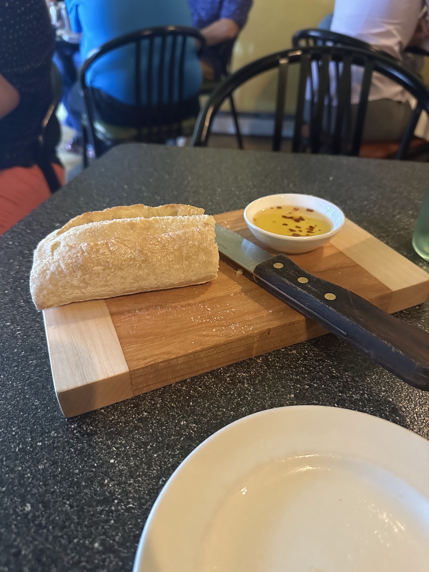 The food was about the same. A few things were really good (the bread, butter, salad), but others were just acceptable (my main dish, chickpea fries). I did really like my salad, but it also would have been difficult to get wrong. The main dish is what really bothered me. I ordered parmesan polenta with a short rib something. If the meat was short rib, I didn't recognize it. I have never had short rib cooked this way, and there is a reason. It was tough, and chewy, when it should have fallen apart. The polenta also showed a lack of ability/experience - it was dry and congealed into a blob of jelly.