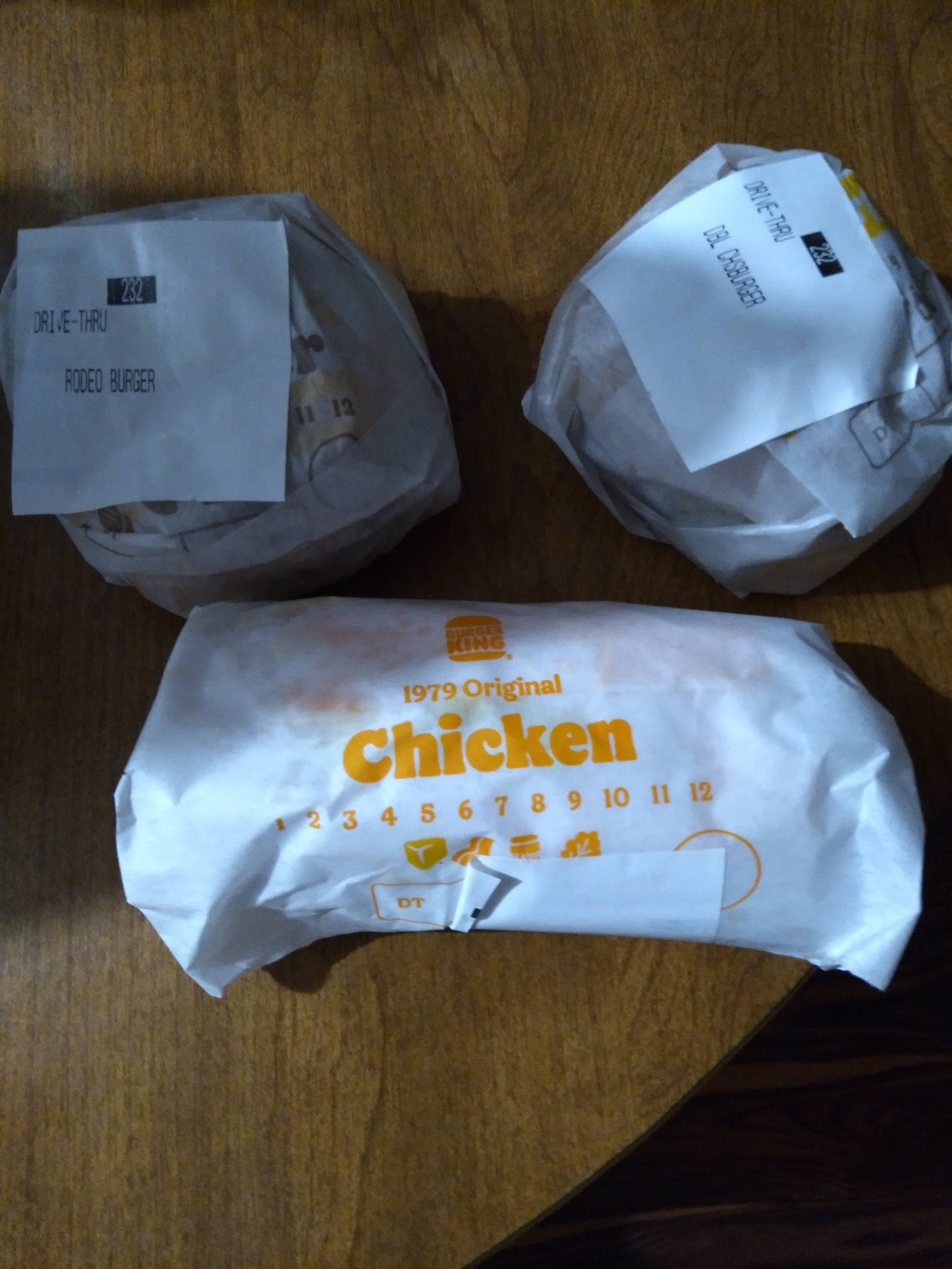 We left the bag closed until we got home after my husband peeked in as we left the parking lot and thought he saw everything underneath the napkins and tumbled hashbrown container. We came home, got inside, opened the bag in the kitchen, and there were only 3 sandwiches and a hashbrown in our bag.