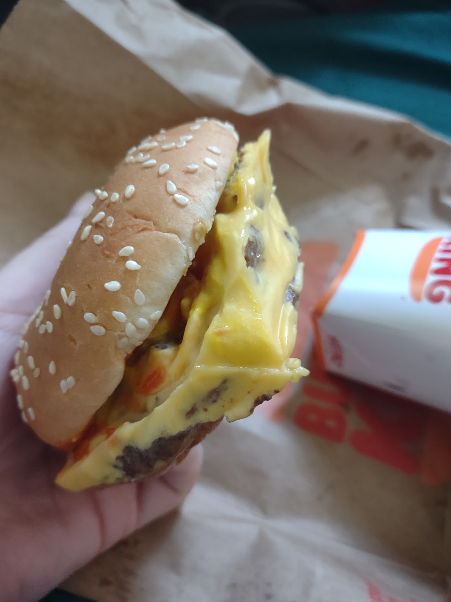 The parking lot wasn't packed. There wasn't a line behind us and there was no one in front of us. After about 15 minutes of waiting, one of the girls (who actually responded at the speaker when I said I was picking up an app order, finally comes to the window with our bag of food. She said she was sorry about the wait and asked if we needed condiments. I said no, wondering if our food would still be hot since it had been sitting for so long while employees went to the front register.