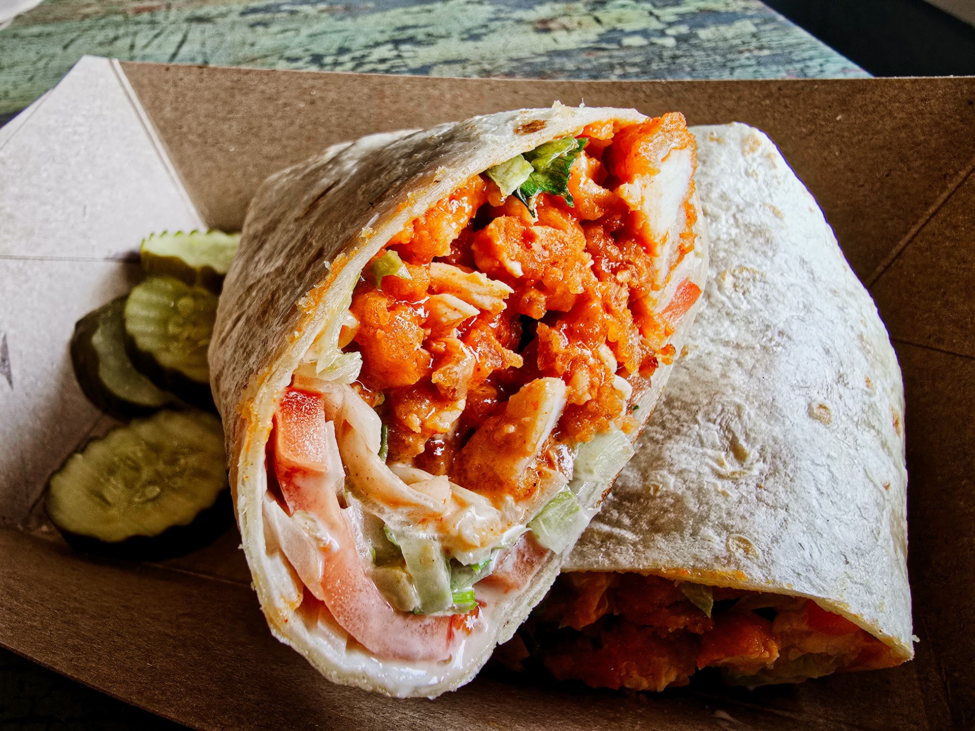 I was greeted by the incredibly friendly and welcoming staff. The food was nothing short of amazing. I ordered the buffalo wrap with a side of truffle fries, and every bite was packed with flavor. The wrap had the perfect balance of spice and tenderness, while the truffle fries were crispy, well-seasoned, and simply addictive.