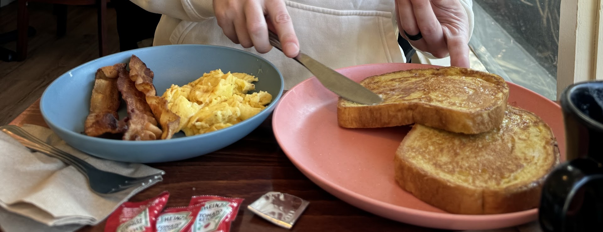 Read moreWe were looking forward to going here, but we were disappointed. It was hot and stuffy inside. Ordering was confusing. But,the young person behind the counter was friendly and professional. The seating/tables is cramped and awkward. Breakfast was served on plastic plates with ketchup packets. Eggs were good. The potatoes were frozen tater-tot style -- not what I expect at a restaurant. Limited choices of toast, and bread was soggy. Overall a disappointment and we won't be going back. Perhaps our expectations were high because it has the Echo...