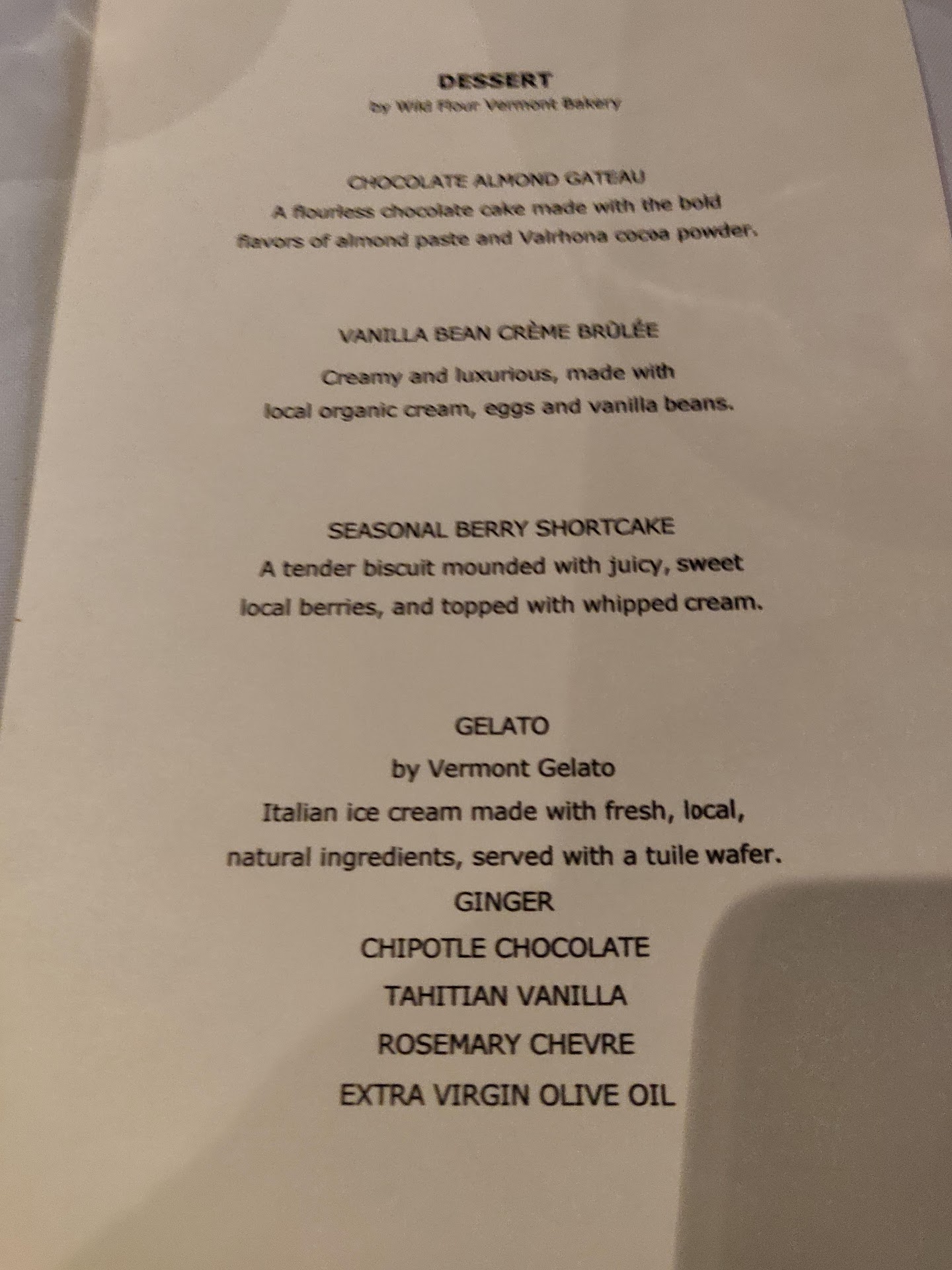 2019: Here again for the Marlboro festival. I usually have the rabbit which is always great but this year a family of rabbits is living in my yard so I decided to have the beef instead, it was delicious.