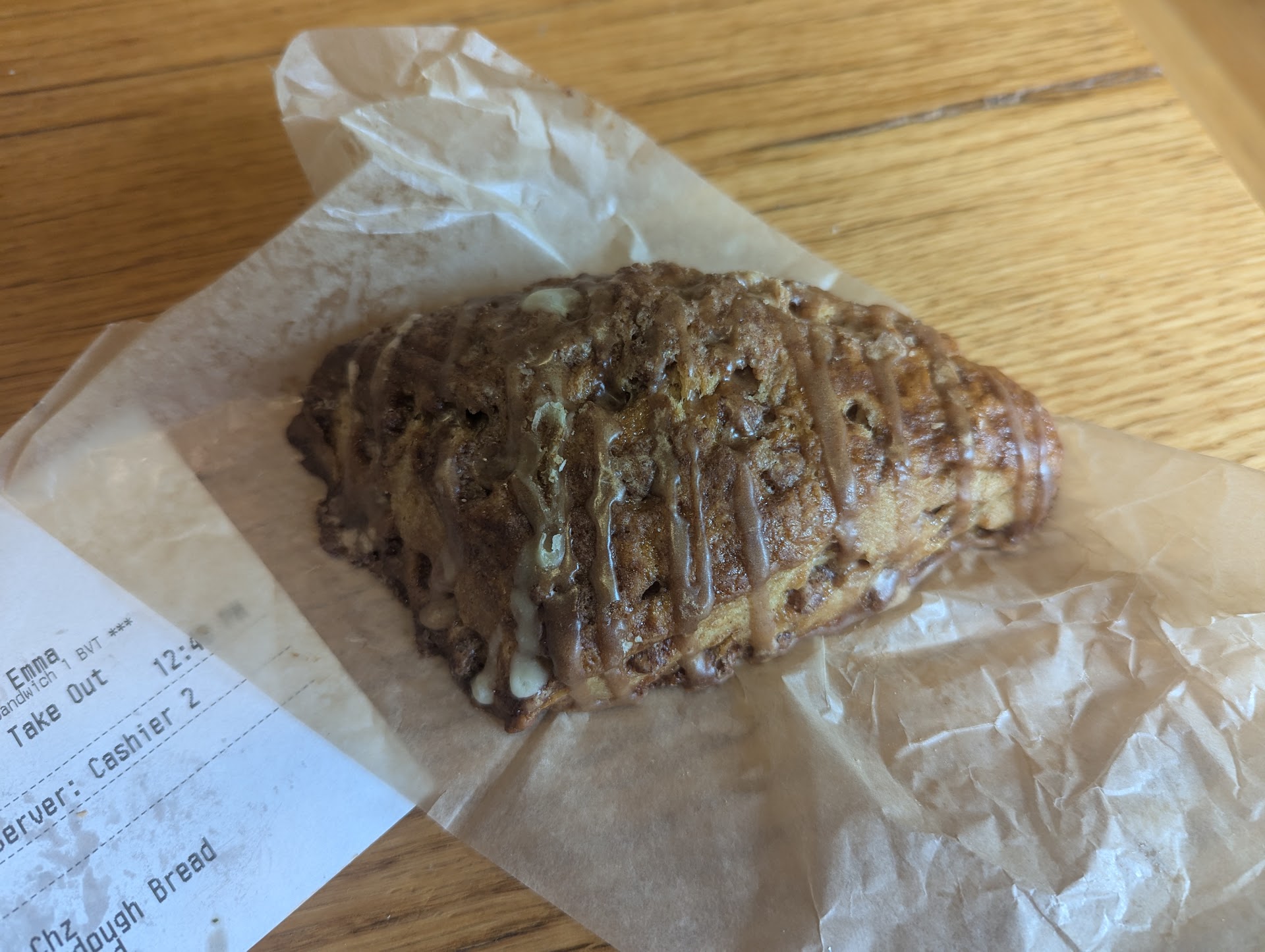 I was pretty famished from our journey so I got an egg and cheese sandwich with Vermont Cheddar (when in Rome) on sourdough, along with an intriguing looking cinnamon chip scone with maple drizzle. The sandwich was decent but a little too greasy/messy. I finished most of it though, save a few crusty scraps. The Cheddar was definitely a strong flavor so if you have issues with the cheese dominating the egg, this is not the option to get. I was a bigger fan of the scone, which probably would have been pretty run of the mill if they hadn't included the maple drizzle - perfect complement to the cinnamon. It didn't last long.