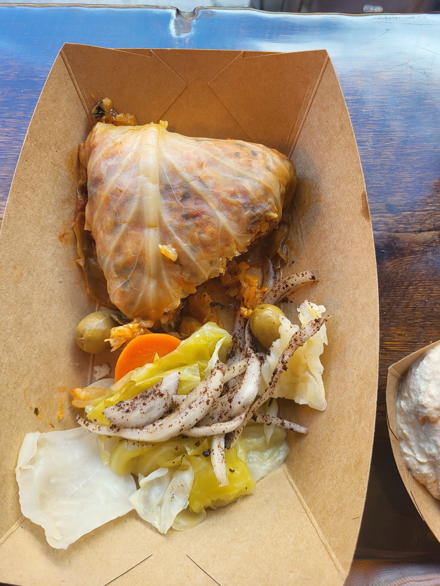 Read moreI was absolutely thrilled to find this spot, and it has quickly become one of my favorites. There was a line to order, and it was about 2 pm on a Saturday - it was worth the wait. I got the stuffed cabbage special and the pita sandwiches to go. I am not exaggerating when I say I felt like my grandma raised up from the dead to make these stuffed cabbages. They reminded me of hers so much I shed a few tears. I couldn't wait to bite into one of the sandwiches, I devoured it. Their falafel is cooked perfectly. Their flavors are absolutely perfect! Everything comes with an optional side of pickled vegetables, sumac onions, and olives. Those were also delicious. Their seating is all bar-level, and there are enough spots for about 15 people. Don't miss out...