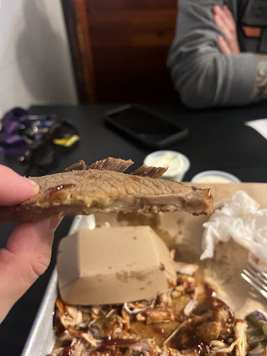 Read moreIf you are a fan of bbq, I would pick somewhere else. I saw the other reviews (mostly positive) and thought that this would be a perfect place for dinner. I was very wrong. We ordered the jalapeño poppers for an appetizer and it was actually good. There was no smoke flavor to be found but they were still tasty which I thought would set the tone for everything else. This led me to dinner which was the trio platter with brisket, chicken, and pork with a side of green beans and slaw. The meats had to be the most dried out sorry excuse for bbq that I’ve had at a restaurant. The brisket was an absolute joke. It literally tasted like it was boiled. No seasoning, no smoke, and tougher than a leather shoe. No smoke ring to be found. No bark. Just boiled beef. The chicken was just as dry and honestly tasted like canned chicken. Once again, there was no smokey flavor, no seasoning, and overall not bbq. Pork was more of the same except it was soggy. It was for sure shredded but that’s about it. The best way to describe this was wet. No flavor to be found other than old pork. The green beans tasted like they were out of the can and the slaw was the only thing that was decent. I tried to salvage what I could with the bbq sauces which is the only thing you can actually call bbq in this joint. I’m pretty sure they were all a base of sweet baby rays mixed in with some other things which was not bad. It , sadly, couldn’t save the meal. We did complain about this and they took off part of the meal which was appreciated but it should have been the whole bill. The server then disappeared for 15 minutes before we could pay the bill. Worst bbq I’ve ever...