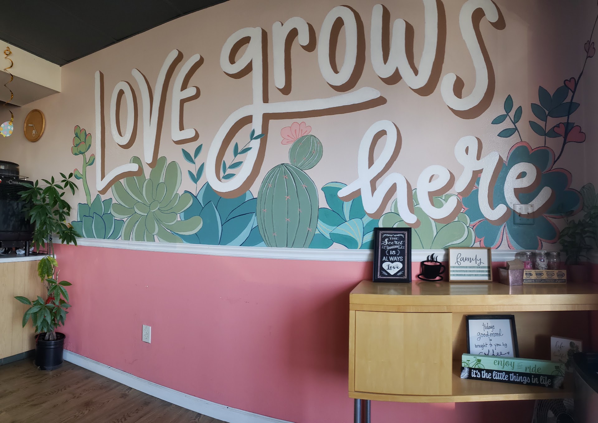 The environment inside is cozy. I like the choice of dishes; they are cute and colorful. The people are very nice, and they always check on how I'm doing. It feels like they really care about you, even though I only say "hi" and...