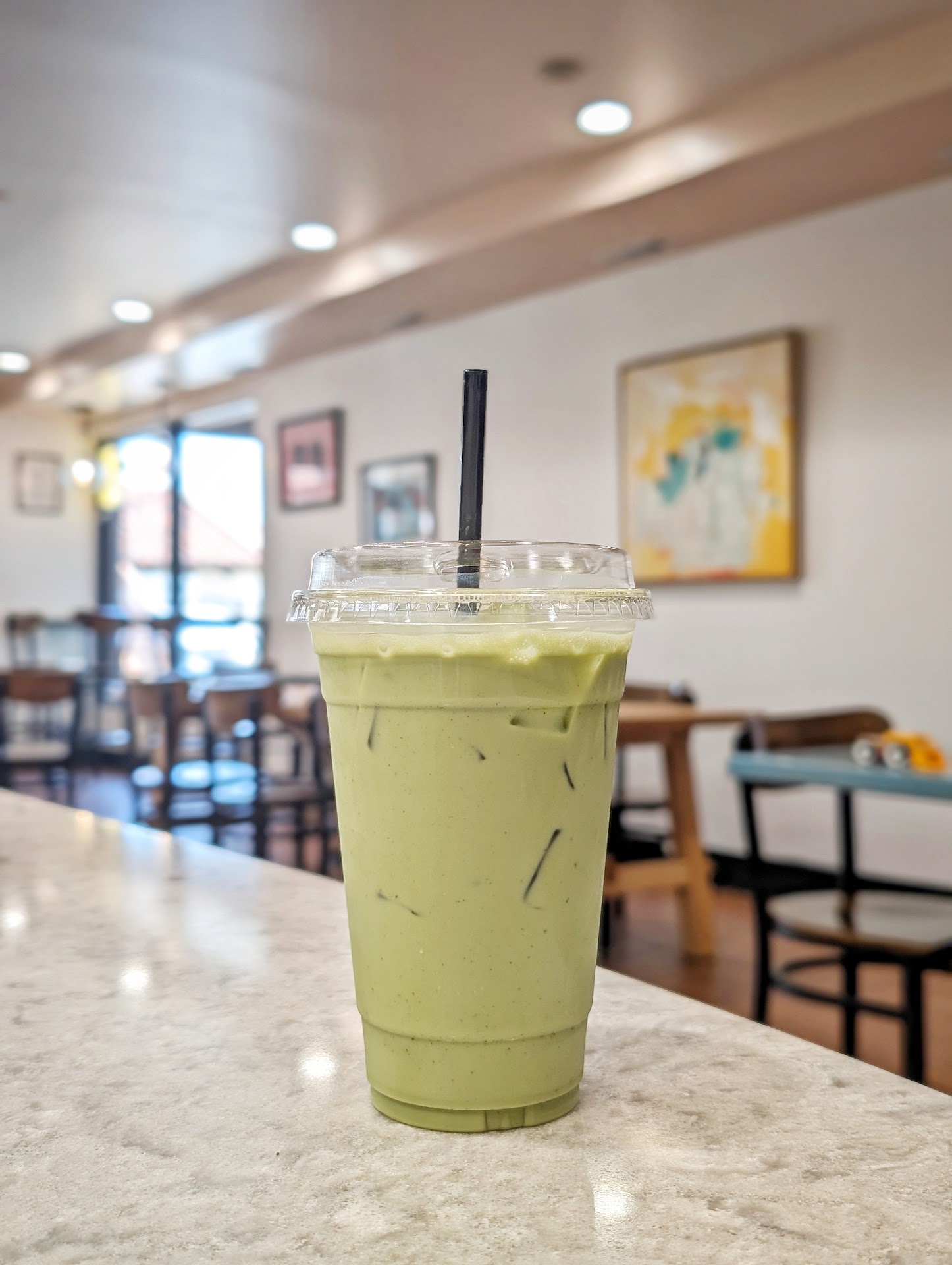 My daughter loves matcha, like the legit grassy matcha flavors. She ordered a matcha latte with oat milk but when it came out, she and I both looked at it with a grimace. She immediately said to me, "Yeah, that color? That's going to be a problem ..." It was so pale, you already knew by eyeballing it that the matcha flavor would be really mild and dilute-- and it was. It overwhelmingly tasted like oat milk with just a hint of matcha. I told her to tell them to remake it but she refused because she doesn't like wasting food.