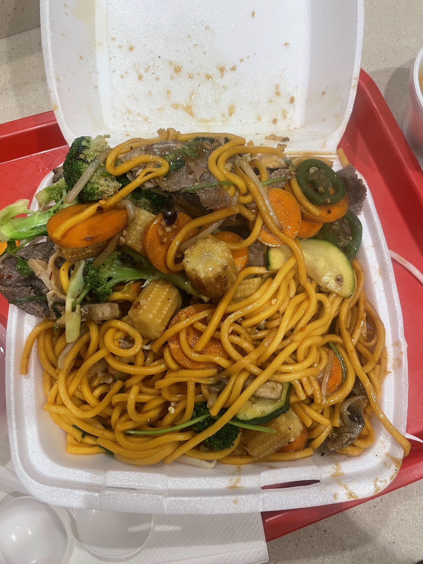 Read moreThe last time I went to this place, the line was super long. There must have been 40 of us standing in line, which tells you something about how good it is. Was I annoyed at the wait? Yeah. Did I wait because it's my favorite place to eat in the mall? Yep! So that's my one issue. They should put two grills in and hire twice as many people. I was behind this family last time, two parents and four teenagers. While they were grilling my bowl of goodness, the mother said to me, "You did it exactly right! Mostly vegetables. My dumb kids won't eat anything green!"" But that's the beauty of Gengis Khan. You get to pick EXACTLY what you want in the precise amounts you want. I get a little meat and as much broccoli as I can pack into my heaping bowl, plus they don't mind if I ask for three spoons of garlic and no spicy sauce. If you're a teenager who wants only chicken and hot sauce and noodles, that's what you get. God bless freedom and God bless Gengis...