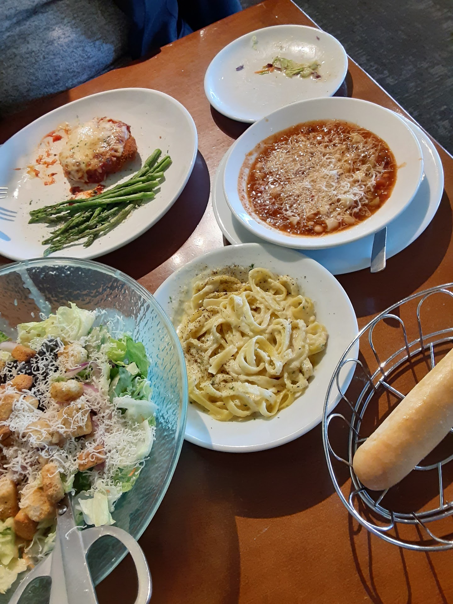 Read moreThe Olive Garden is a popular restaurant providing a fusion of Italian and American food that despite my reservations continues to be an enjoyable visit. Their menu changes over time as they find new blends of ingredients. They offer the endless salad or soups, and breadsticks are provided continuously. Service has been consistently professional and friendly. But the prices... Yes, the food is of good quality, the portions are good, the flavor blends are well thought out, but almost everything seems to start at the high teens or quickly runs in to the twenties. Add a glass of wine, an appetizer and/or a dessert, and you are already in the $60s for 2 before tax and tip. Bringing friends? Check your checking account first. The saving grace here is that by splitting the entree in to 2 meals (i.e. getting a box for tomorrow's lunch) you can better justify the pricing. Still, this is not a high-end restaurant where you expect to pay more, so while I appreciate the overall experience, there is an element of chain restaurant predictability and consistency and cattle call boxed processing that keeps it from being scored really high. 4 stars. I suggest looking at Romano's Macaroni Grill as an...