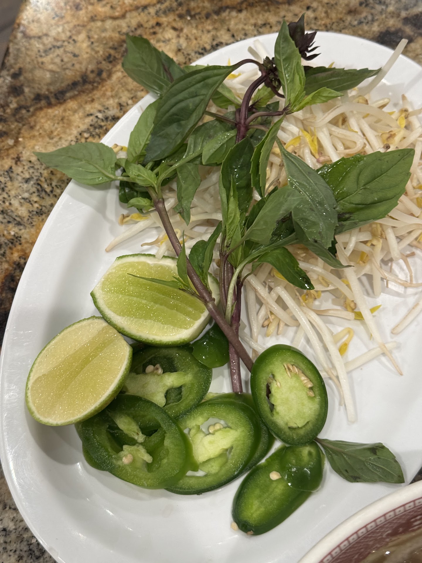 We ordered the #16 pho with rare steak, and let me tell you, that broth was basically a warm hug for our souls. It came with the perfect lineup of mix-ins—bean sprouts, mint leaves, jalapeños, and a fresh lime to squeeze in, plus all the hoisin, Sriracha, and chili paste you need to turn your bowl into a personal spice experiment. The rare steak was tender, the noodles were on point, and the whole thing was the kind of meal that makes you forgive all sins—including the complete lack of customer service.