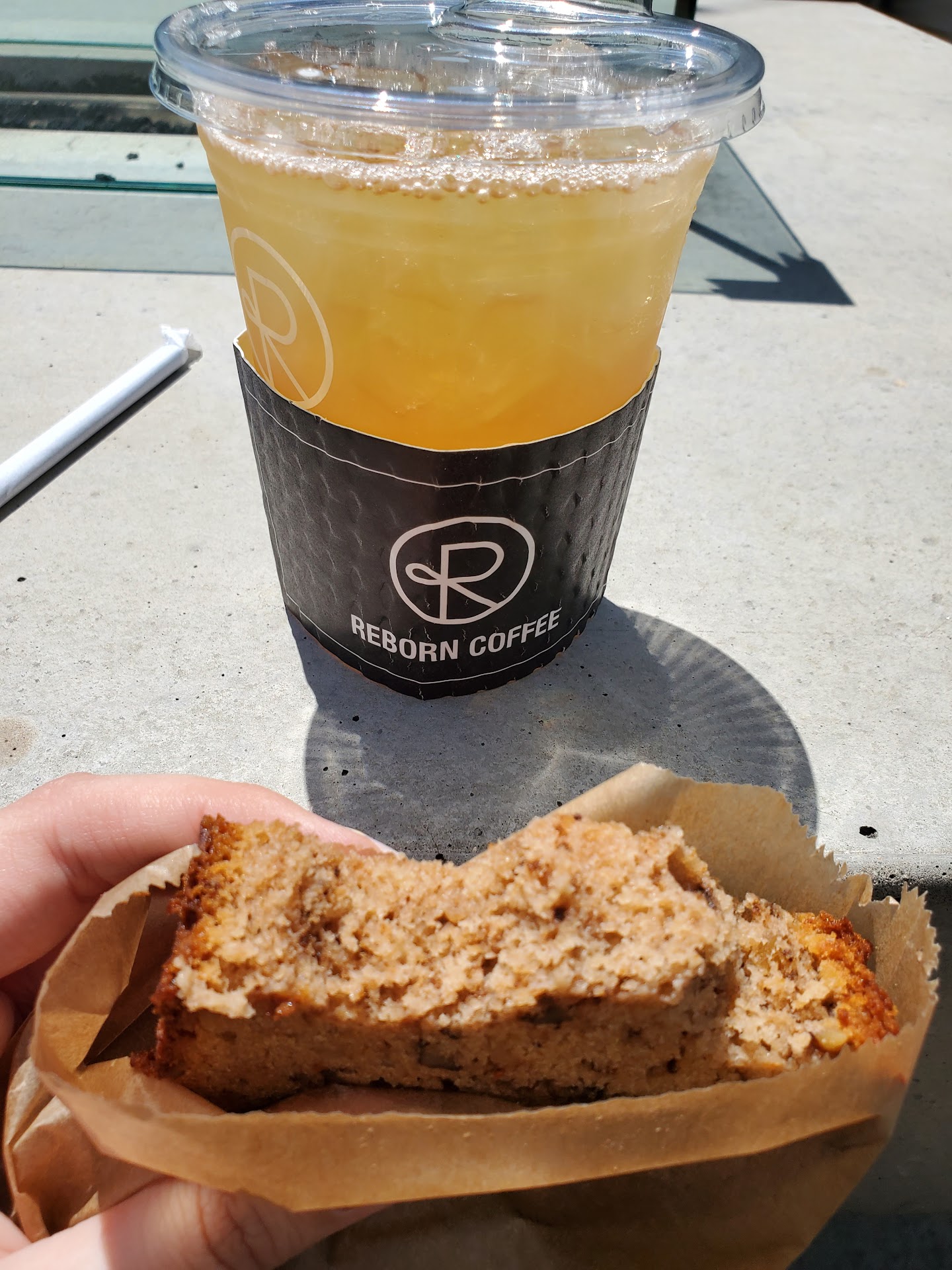 Love this place. Reborn is my favorite, especially the one in brea and corona del mar! The staff here is lovely, always making good recommendations and quick when making drinks! I also love the atmosphere and the drink options as well as that they have gluten free banana bread! As someone with allergies, it's great to find a place like this. Also their iced teas are AMAZING and I have the option to just add honey which I love! HIGHLY RECOMMEND THE PEACH BLOSSOM!! Also their sitting area outside is great to chat with a friend or get some sun on a lunch break 😍