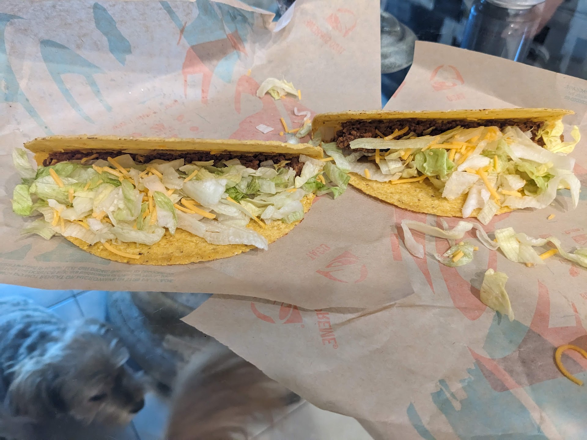 GASP Literally the MOST delicious Taco Bell experience in YEARS! Doritos shells? Crunchy and perfectly powdered, intact af. Lettuce, fresh and perfect amount. Tomatoes? Plump, cut evenly, and NOT mushy. Cheese, expertly sprinkled. Sour cream? Centered and even. Nacho Fries? Seasoned evenly and seemed super fresh. These were like the original Doritos Locos tacos of like the 2010s - new & fresh & carefully crafted!