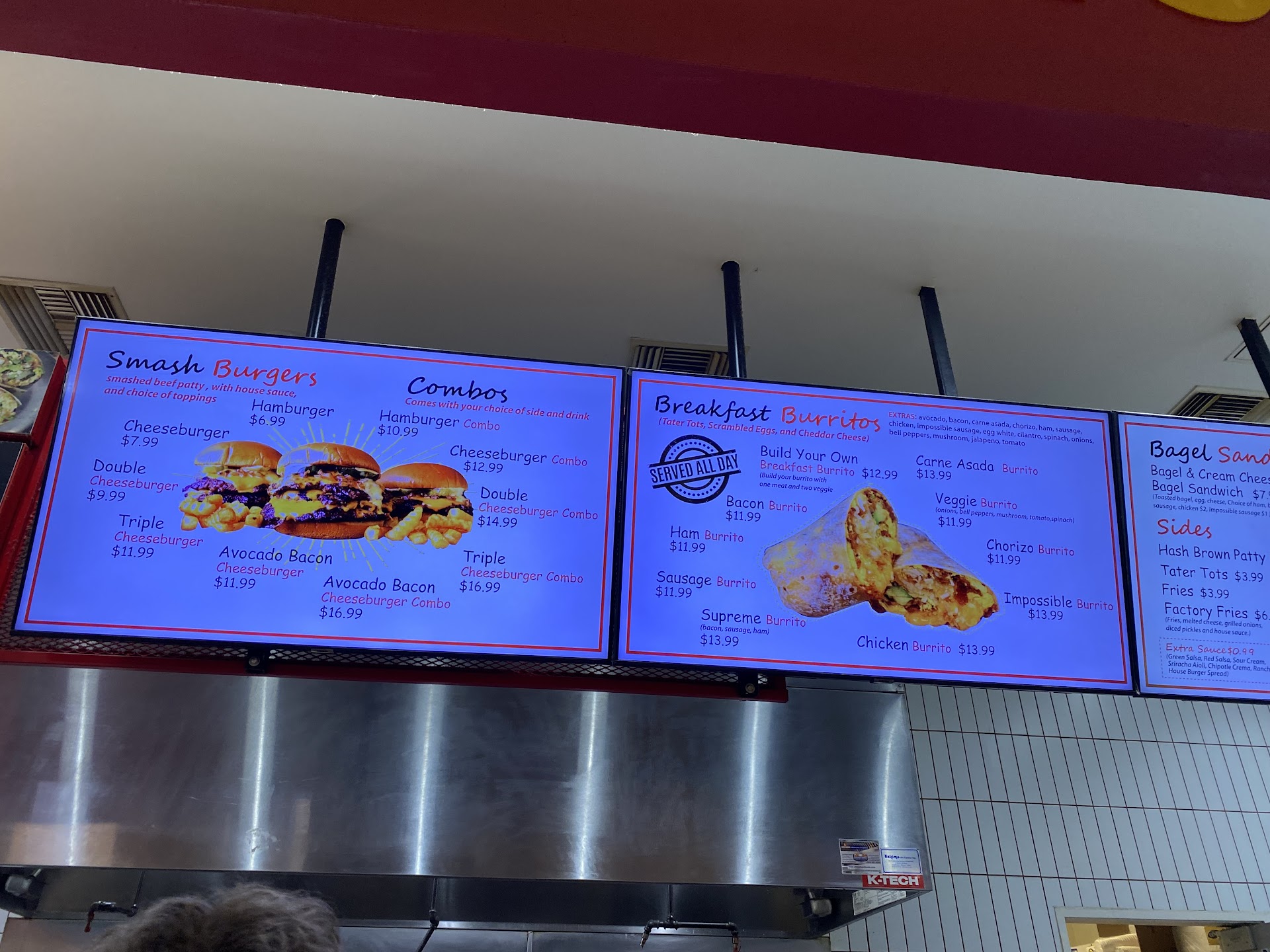 I recently had the pleasure of dining at The Breakfast Factory in the Brea Mall food court, and let me tell you, it was a very tasty experience! While they offer some mouthwatering breakfast burritos that caught my eye, I decided to try their smash burger menu this time.