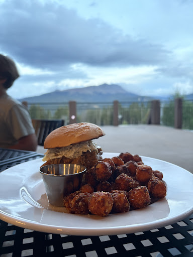 Everything about this restaurant was amazing! Several members of our party have food allergies and they were easily able to accommodate them. Everything was delicious and the desserts were the perfect finish. The view as immaculate, we were able to see miles out over the mountain. We were able to play corn hole and shuffleboard in the nice outdoor area while we waited for our food. They turned on the heaters for us, as we are not used to the cooler temperatures (being from Florida). Our food came quickly and the portions were larger than expected! Veta is an incredible server. She was very friendly, attentive, and helpful! Overall, we were super impressed with everything!